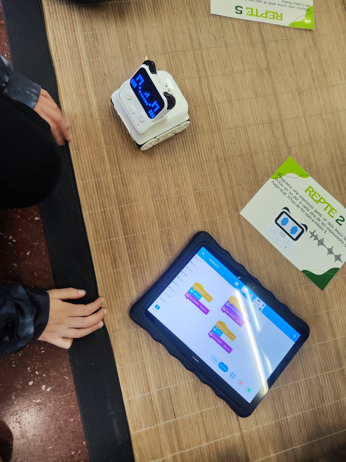 Mitjançant l’ús de Codey Rocky, els nens van aprendre a crear i controlar el seu propi robot, programant-lo per realitzar diferents tasques mitjançant blocs visuals. A través de Scratch, van desenvolupar els seus propis projectes interactius, aprenent els conceptes bàsics de la lògica de programació com condicions, repeticions i esdeveniments.