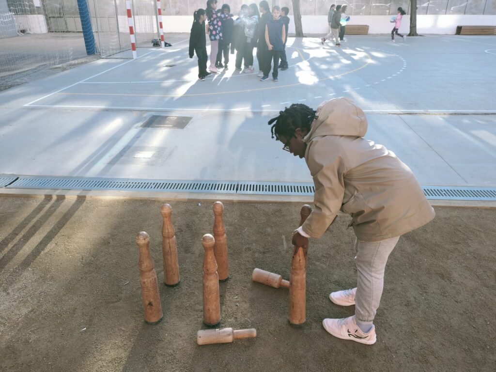 Els nens i nenes de 4t estem aprenent a jugar a les bitlles catalanes. És un joc popular i tradicional de la cultura catalana, on practiquem la punteria a través dels llançaments dels bitllots. Quan comencem sembla molt difícil, però cada ronda que passa, anem agafant més traça i acabem fent-ho molt bé!