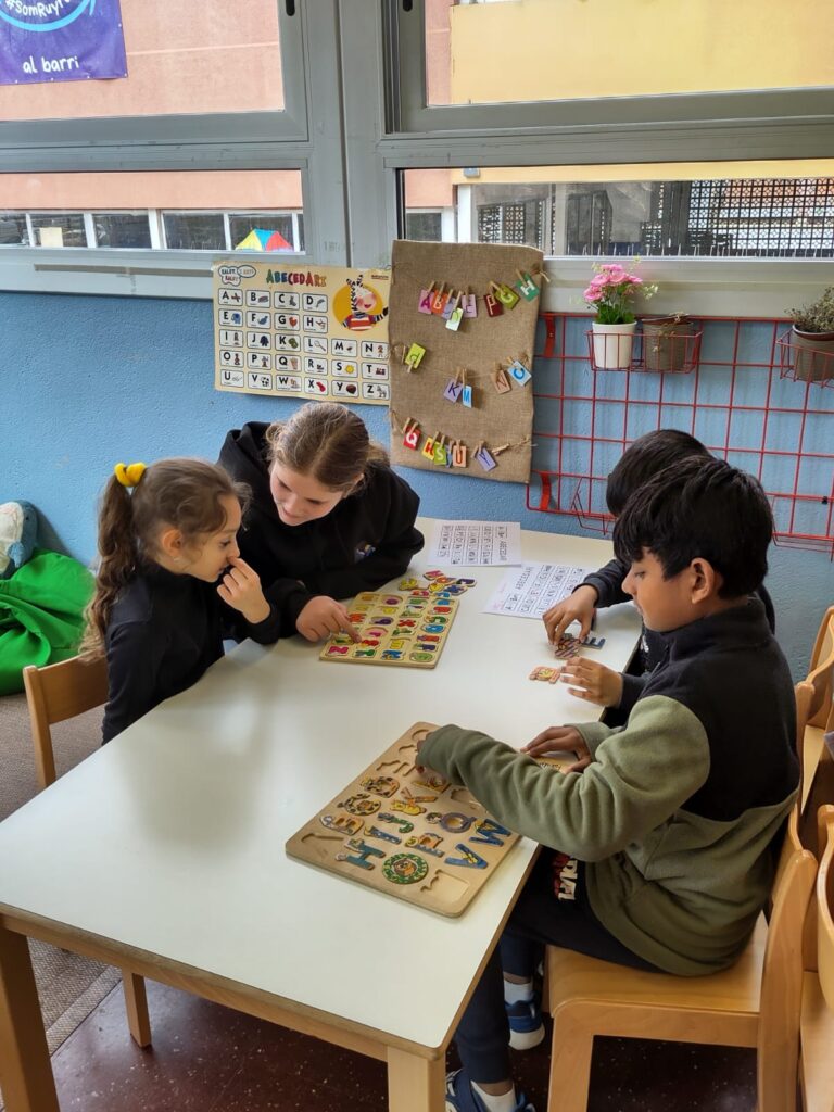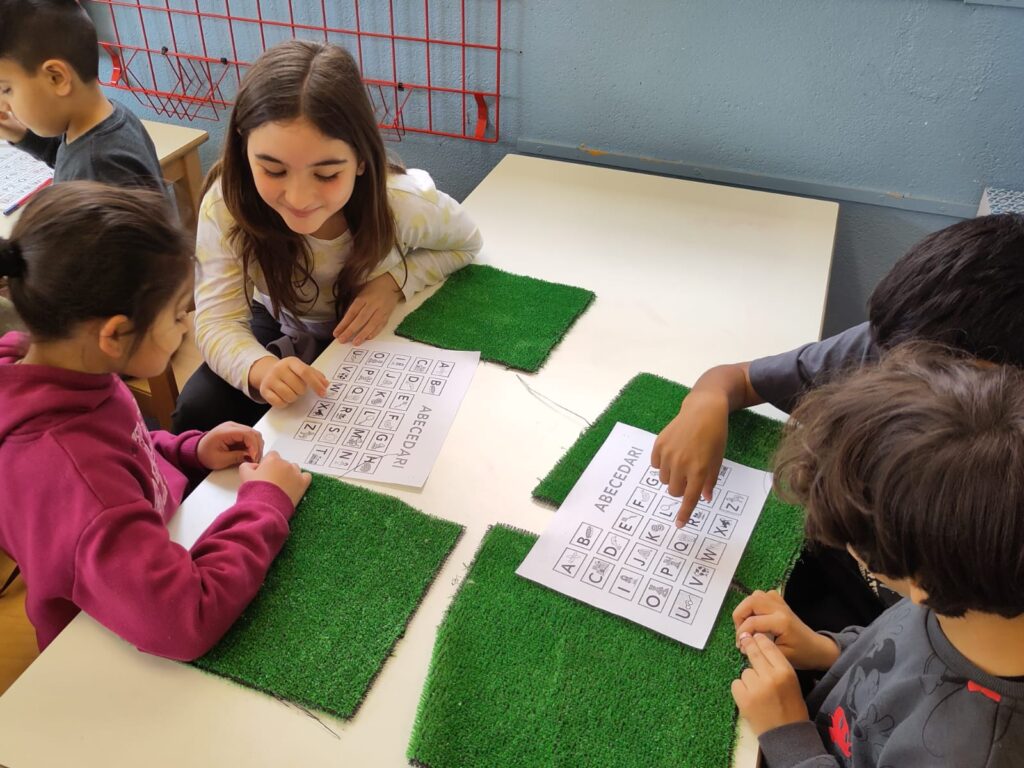 Aquesta setmana, els alumnes més grans de l’escola han fet de padrins lectors dels més petits en una activitat especial per ensenyar l’abecedari. L’experiència ha estat plena de complicitat, aprenentatge i moltes rialles.