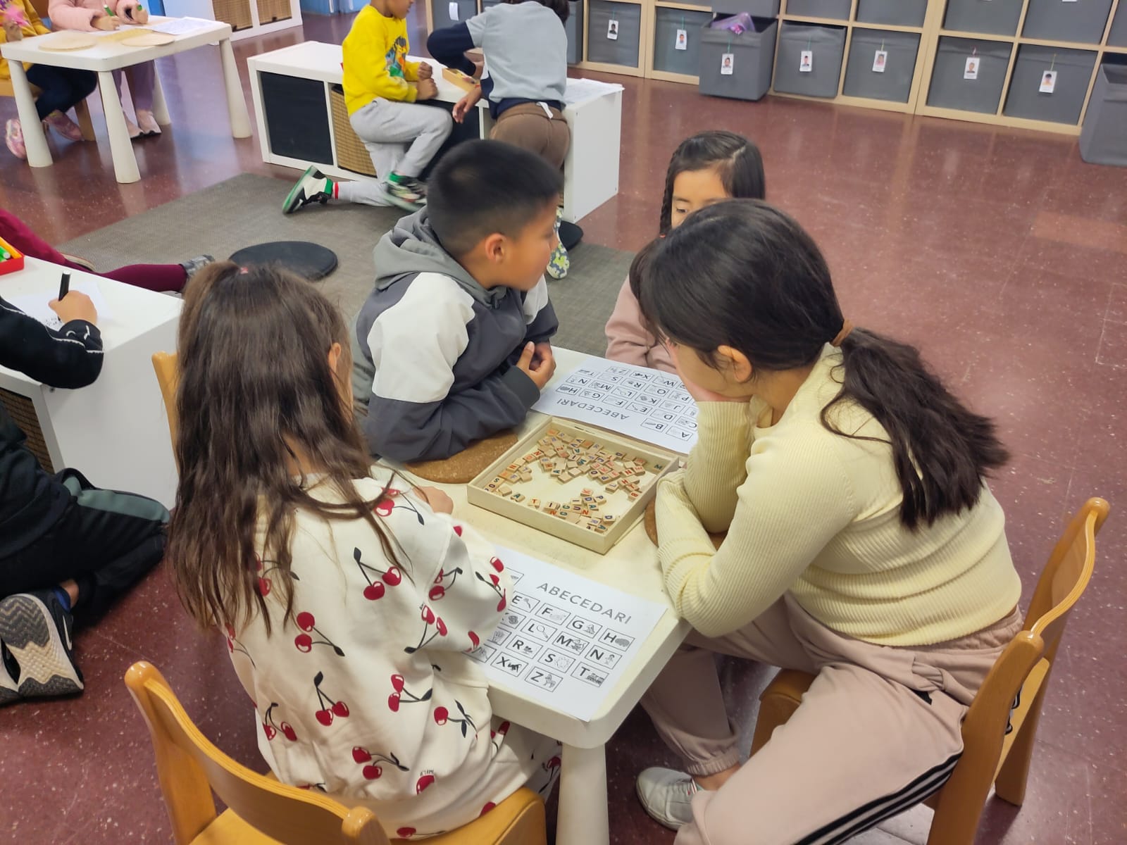 Els padrins lectors, amb molta paciència i dedicació, han ajudat els seus fillols a reconèixer les lletres de l’abecedari mitjançant jocs, cançons i contes. Amb aquesta iniciativa, no només han reforçat el coneixement de les lletres, sinó que també han fomentat el gust per la lectura i el vincle entre alumnes de diferents edats.