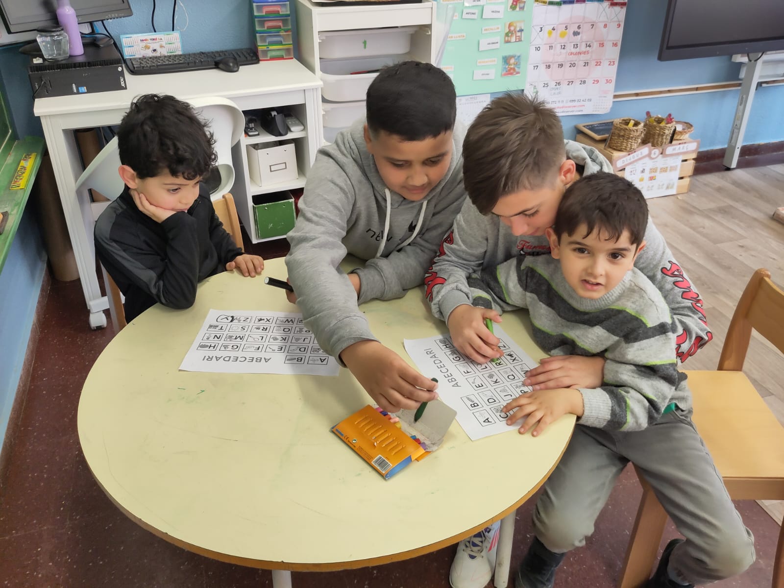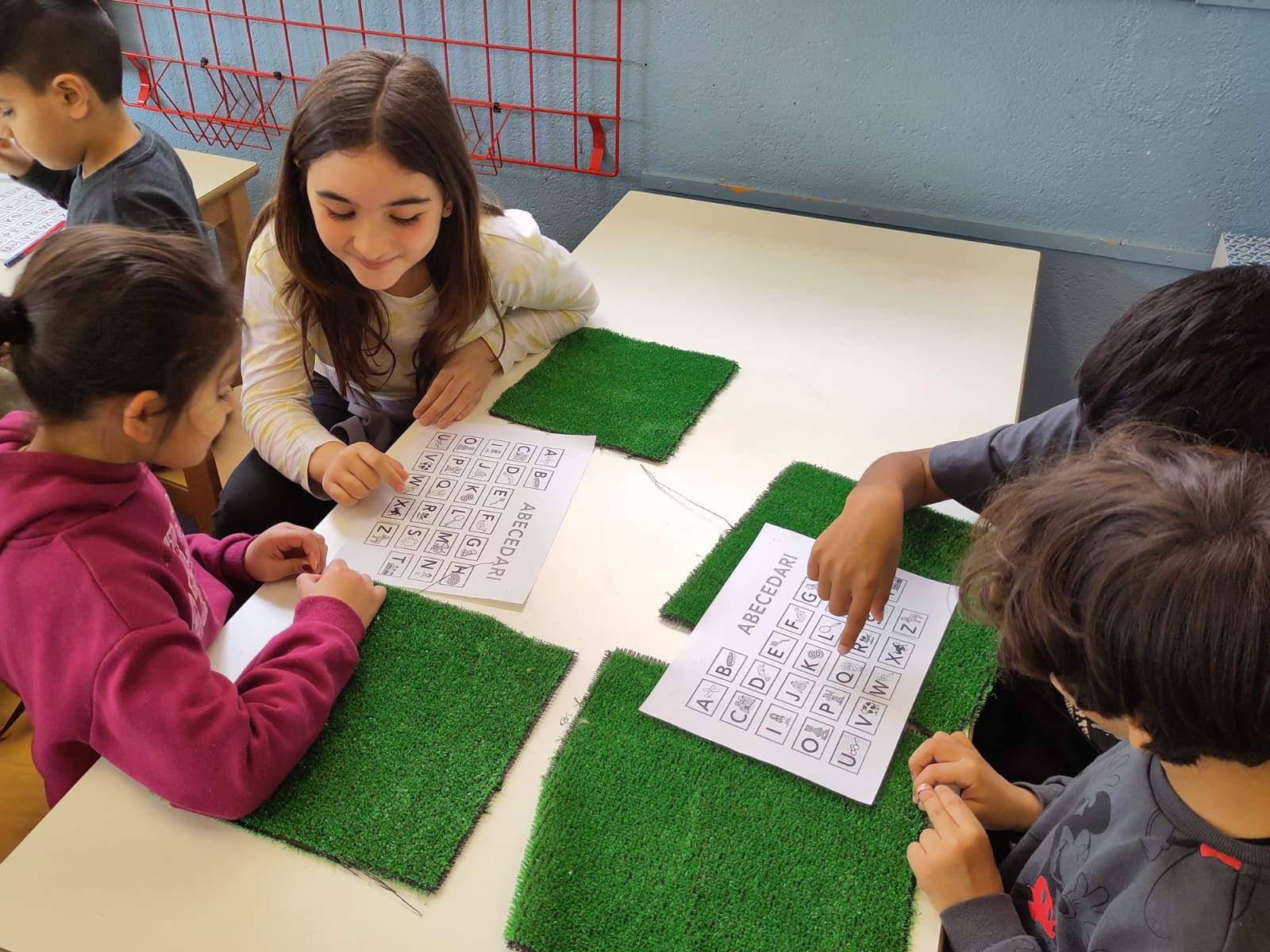 Aquesta setmana, els alumnes més grans de l’escola han fet de padrins lectors dels més petits en una activitat especial per ensenyar l’abecedari. L’experiència ha estat plena de complicitat, aprenentatge i moltes rialles.