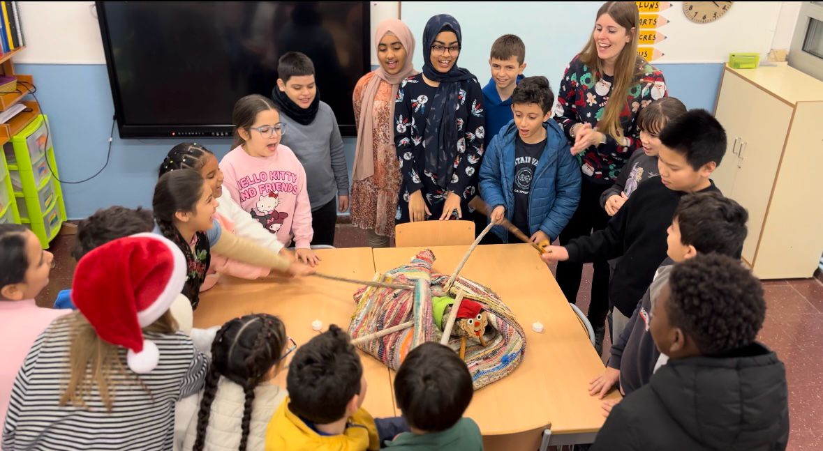 Durant el mes de desembre, l’alumnat de l’aula d’acollida ha rebut la visita del Tió, una tradició molt especial i màgica catalana. Al llarg d’aquests dies, hem descobert qui és aquest personatge tan entranyable i quin és el seu origen. També hem après molt vocabulari relacionat amb l’hivern i hem esbrinat quins són els seus menjars preferits i quins no li agraden gens. A més, hem cantat la seva cançó amb molta il·lusió i l’últim dia del trimestre, després de cuidar-lo i alimentar-lo bé…