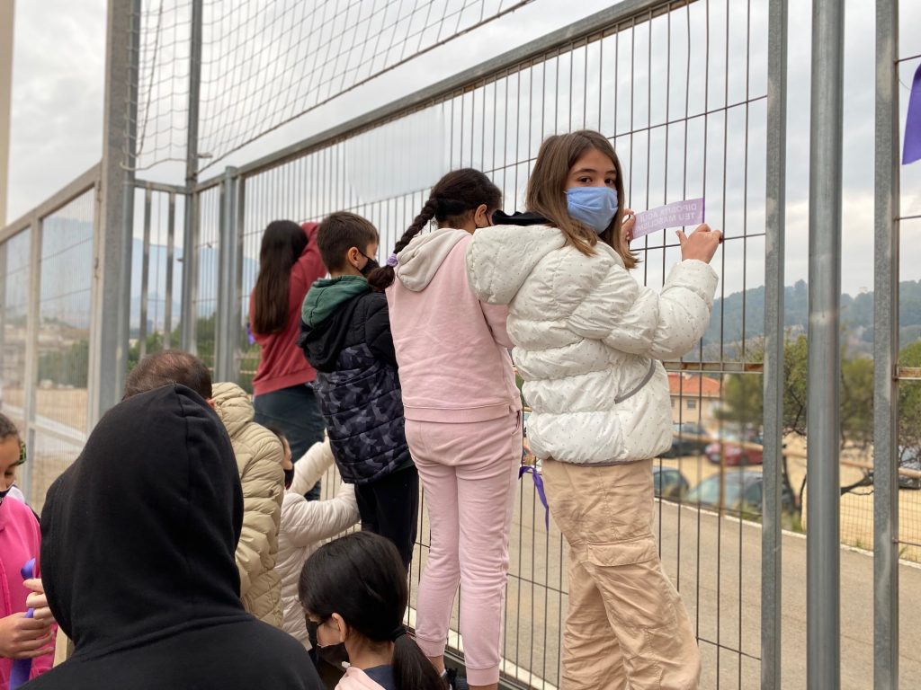 Aquesta acció, precedida per una sèrie de debats i visualització de vídeos temàtics sobre la violència masclista, es fonamenta amb una doble vessant: la pedagògica (aprenentatge de continguts específics relacionats a l’àrea d’Educació en Valors) i la conscienciació moral (incidir en comportaments que afavoreixin sempre el diàleg front a la violència).