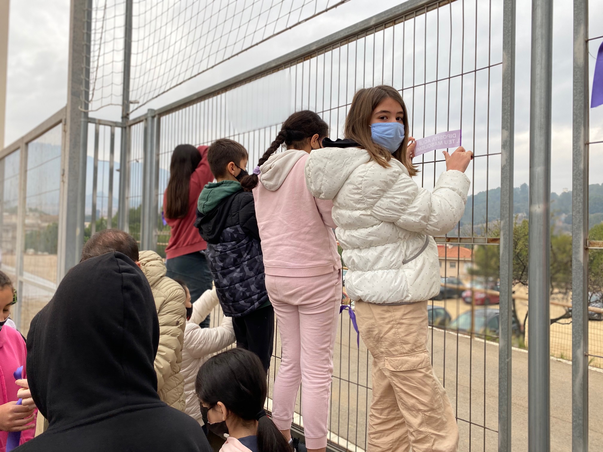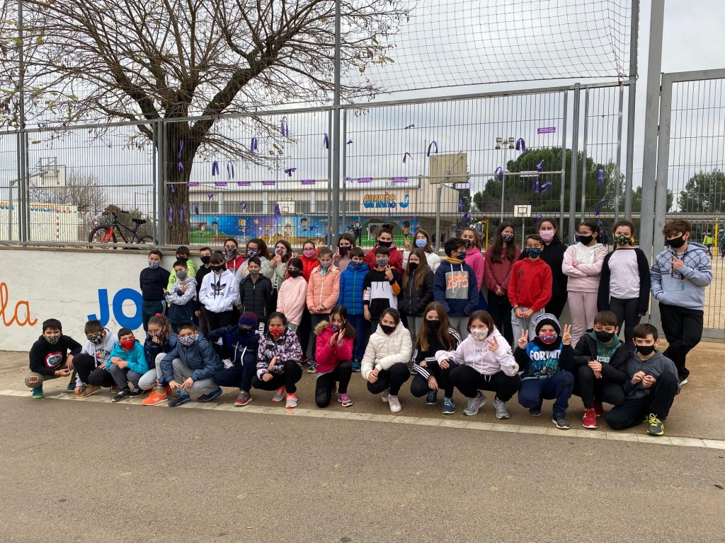 El passat dia 25 de novembre vam celebrar a l’escola el dia internacional contra la violència de gènere. Els alumnes de 6è, conscients de la problemàtica social que aquesta situació suposa, vam sortir al pati per tal de penjar unes engaxines i lligar uns llacets lila com a mostra de solidaritat envers les víctimes.