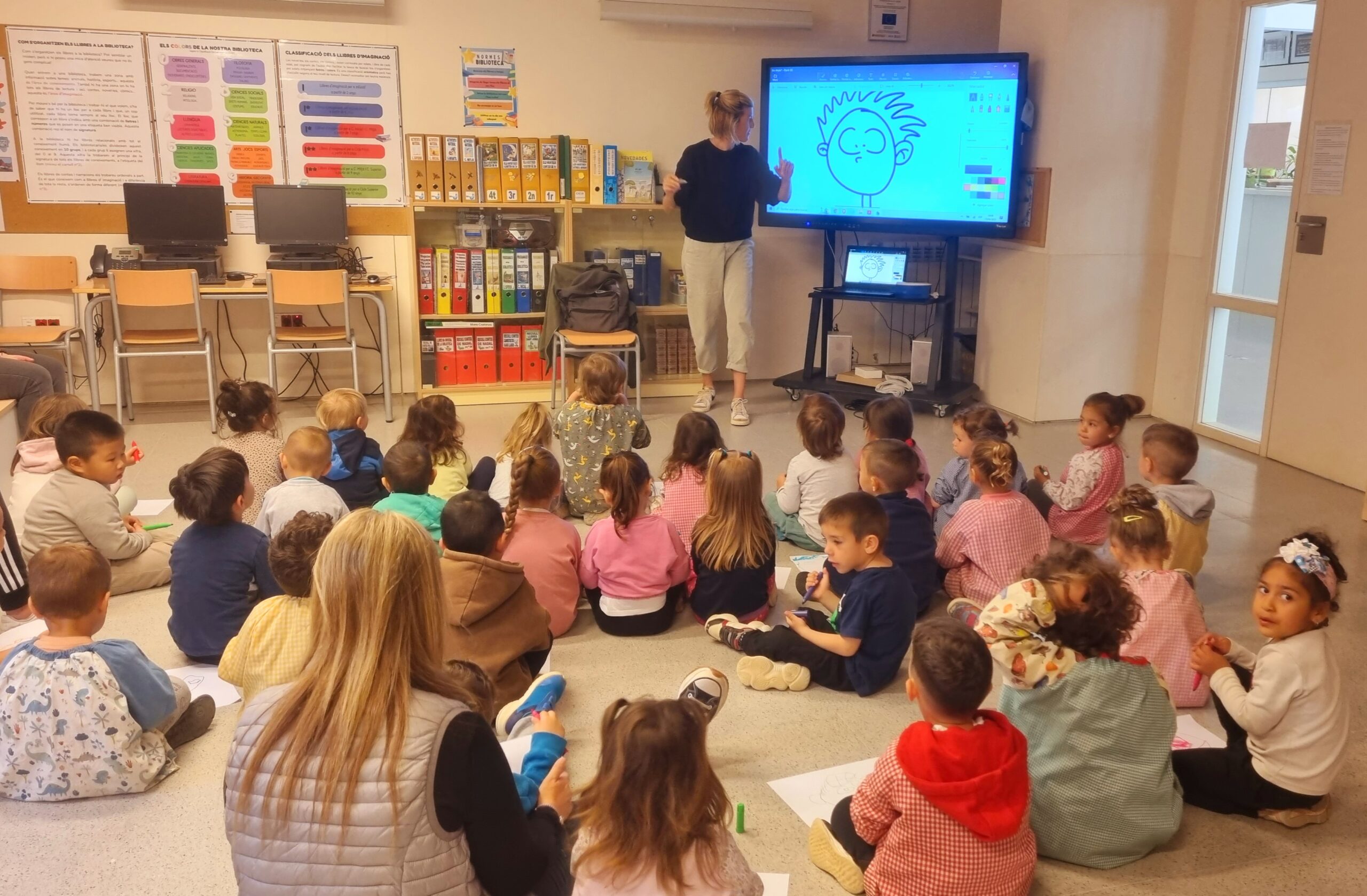 Visita de la Clara Oliveres a I3Per escola inf / 13 d'abril de 2023 / Curs 22-23 / Curs 22-23, EI 3 AVUI LA CLARA, MURALISTA I IL·LUSTRADORA, ENS HA EXPLICAT EL SEU OFICI I COM DIBUIXAR UNA CARA.