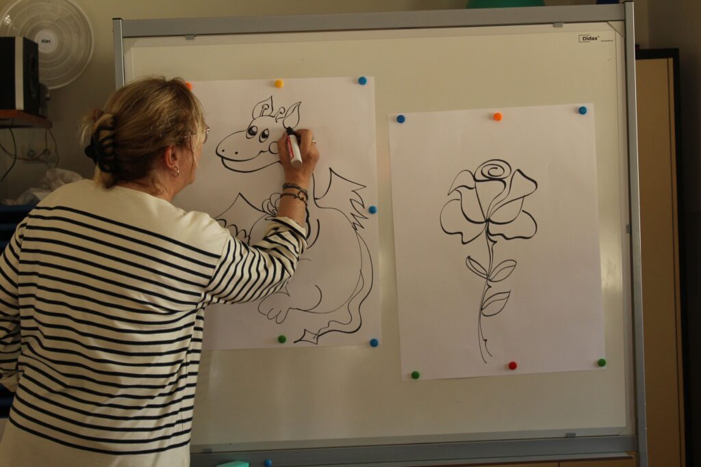 La setmana passada, amb motiu de la diada de Sant Jordi, els nens i nenes d’educació infantil vam tenir la visita de la Núria Viladés, mestra i il·lustradora, que ens va venir a explicar i dibuixar un conte. Petits i grans ho vam gaudir molt!