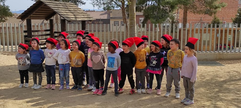 ELS NENS I NENES DE LES CLASSES ELS TRES PORQUETS I LA RÍNXOLS D’OR HAN PARTICIPAT A L’ACTIVITAT DE CANTADA DE CARAMELLES D’EDUCACIÓ INFANTIL AMB EL SEU GRUP BOMBOLLA.