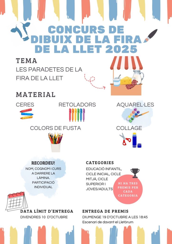 Donem per finalitzat el concurs de dibuix de la Fira de la Llet. Si voleu veure els dibuixos guanyadors i l’entrega de premis, els trobareu publicats dins del bloc de cicle mitjà.