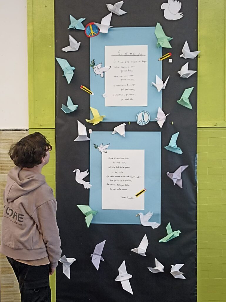 Els alumnes de a l’aula han llegit uns quants poemes sobre la guerra i la pau.