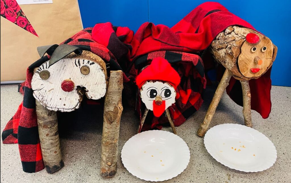 Després de trobar diferents peces a cada comunitat, ens hem reunit per ajuntar-les totes i muntar el trencaclosques. “Ja sabem on està el Tió, anem a buscar-lo!”, ha cridat l’alumnat emocionat. Així doncs, ens hem posat les jaquetes i tothom a buscar el Tió!