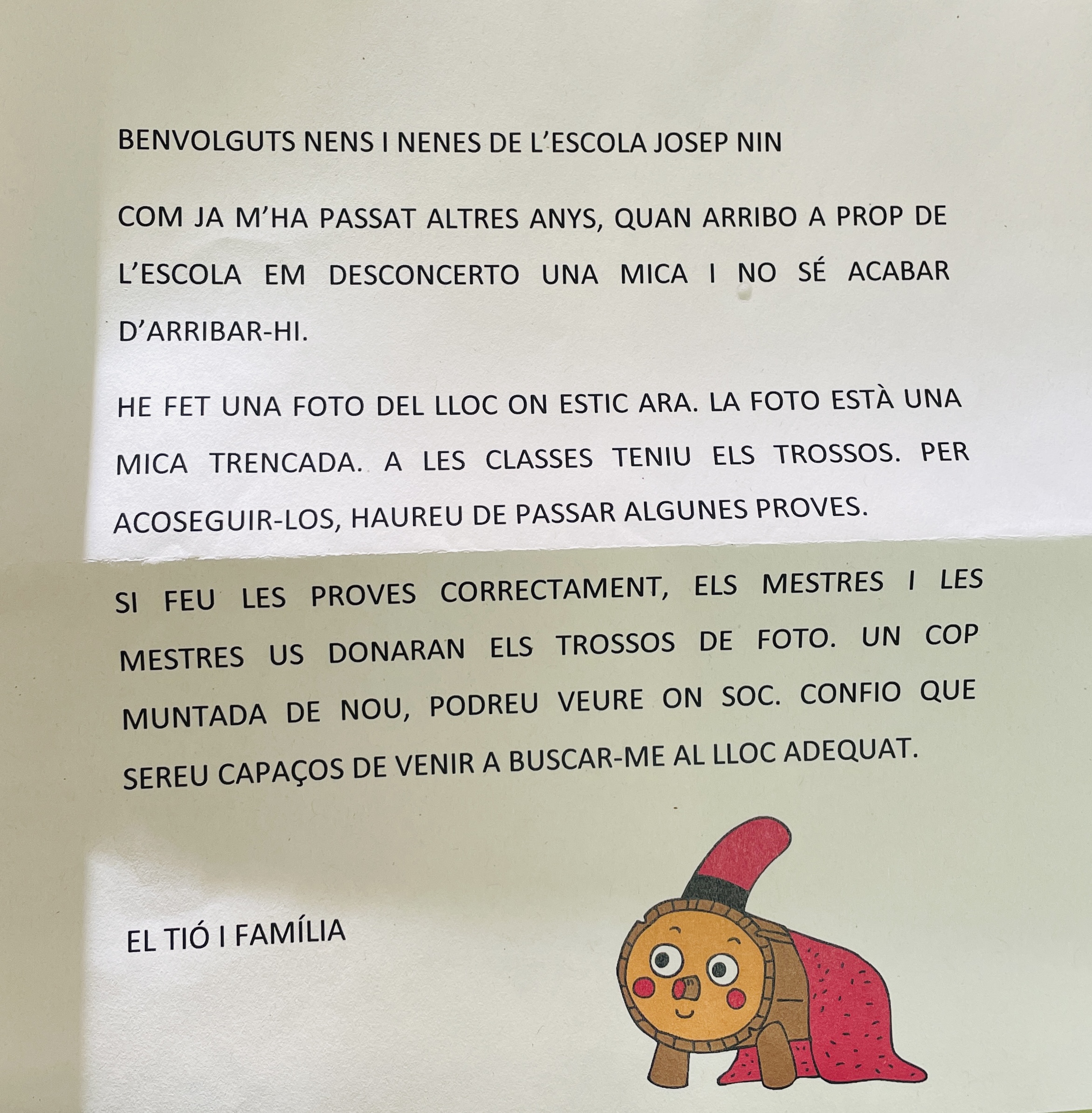 Avui hem rebut una carta del Tió que ens deia el següent:
