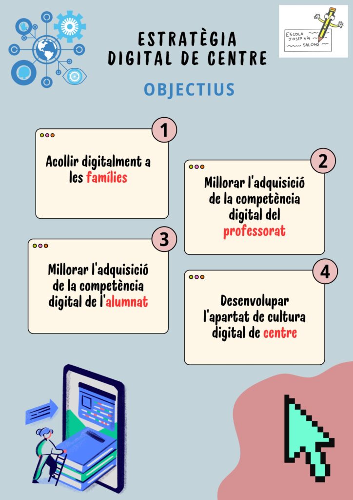 Amb els resultats extrets de la diagnosi, la Comissió d’Estratègia Digital del Centre ha formulat els següents objectius generals a desenvolupar els cursos vinents.