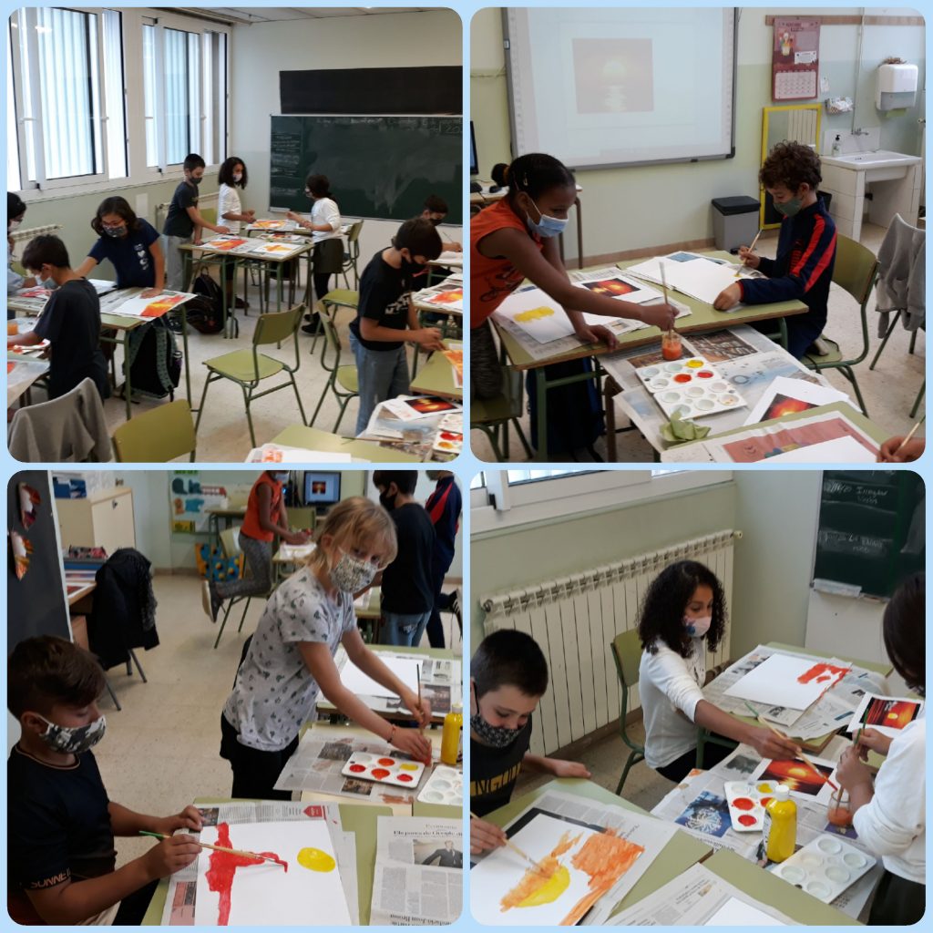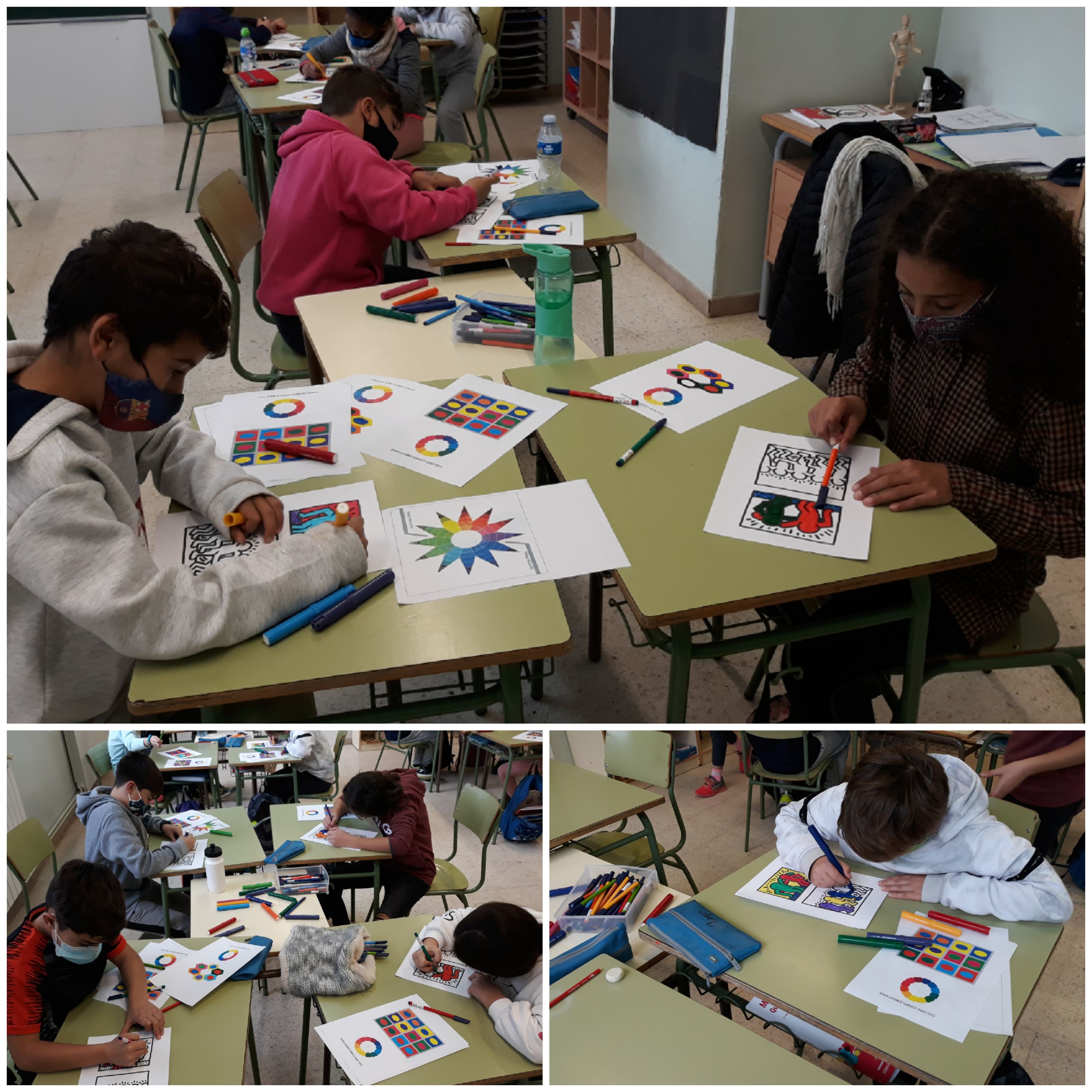 Els alumnes de cinquè estem treballant el Color: Els colors primaris i secundaris i els colors càlids i freds. Hem pogut observar com van sortint diferents colors a partir dels colors primaris, pintant una posta de sol amb diferents tons càlids i freds. Hem vist quins són els colors complementaris i hem pintat uns dibuixos de Keith Haring.