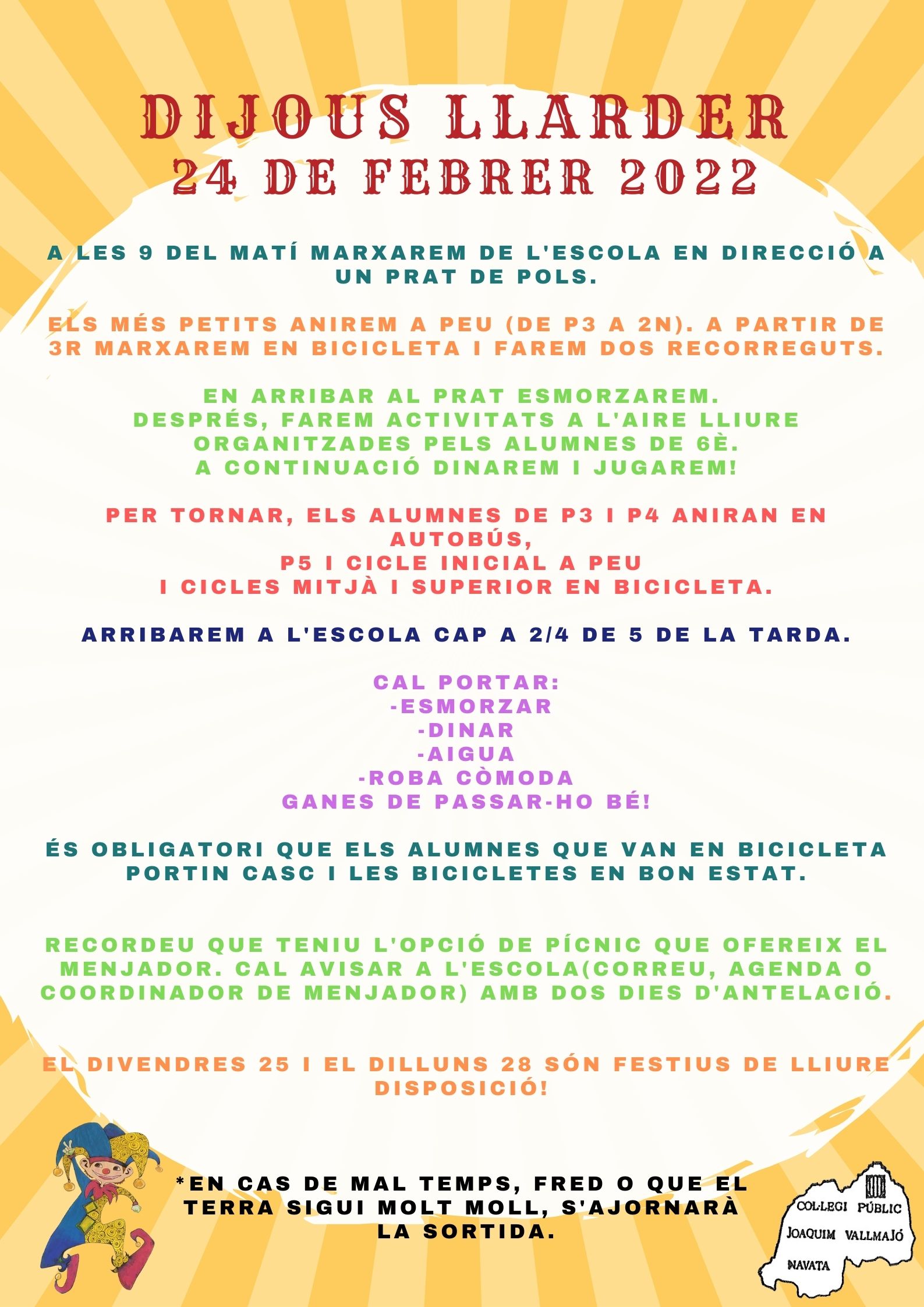 Us presentem el cartell i el programa del Dijous Llarder d’aquest any, que han dissenyat alumnes de 6è.