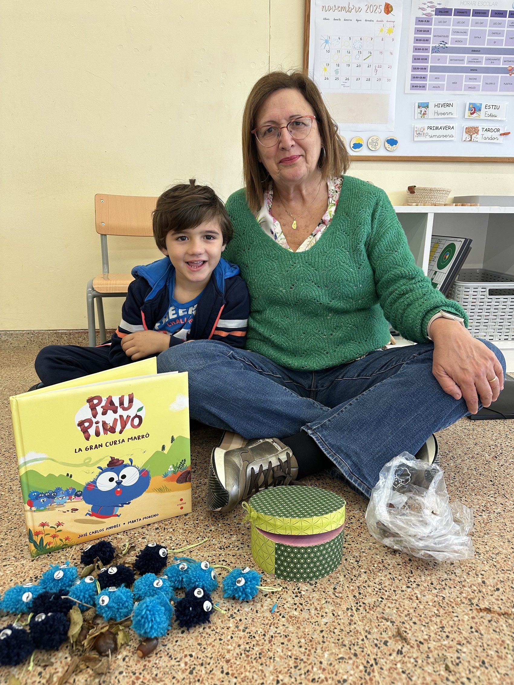 A més, l’àvia i el Guillem ens han sorprès amb un detall preciosíssim: un ninot de llana per a cada nen i nena, elaborat per tots dos amb molta cura, que representa el protagonista del conte.