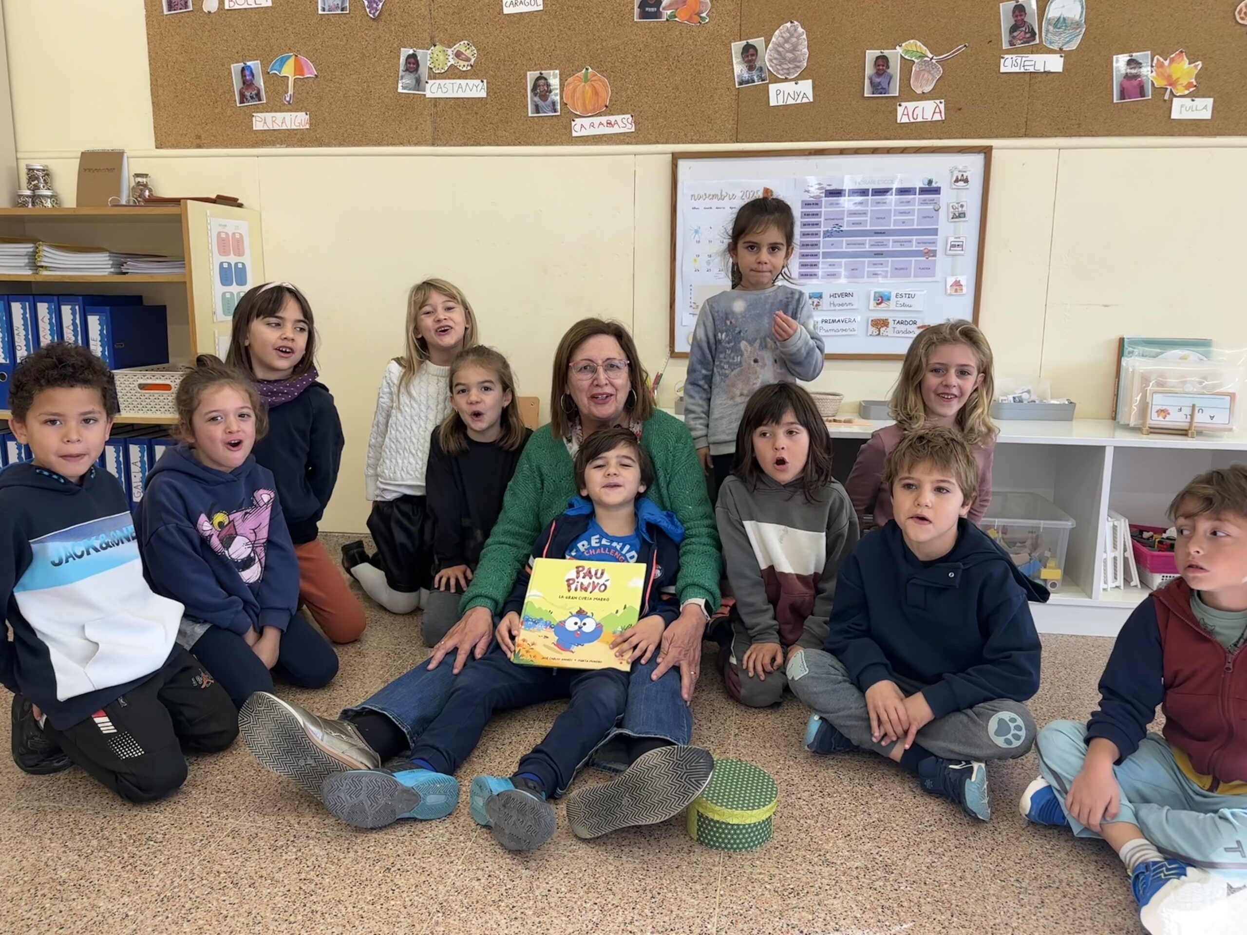 Avui ha estat un matí ben especial a 1r! L’àvia del Guillem ha vingut a participar en l’activitat Famílies Lectores de l’escola, tot coincidint amb l’aniversari del seu net. Per celebrar-ho, ens ha llegit el conte Pau Pinyó, la gran cursa marró, que ha agradat molt a tot l’alumnat.