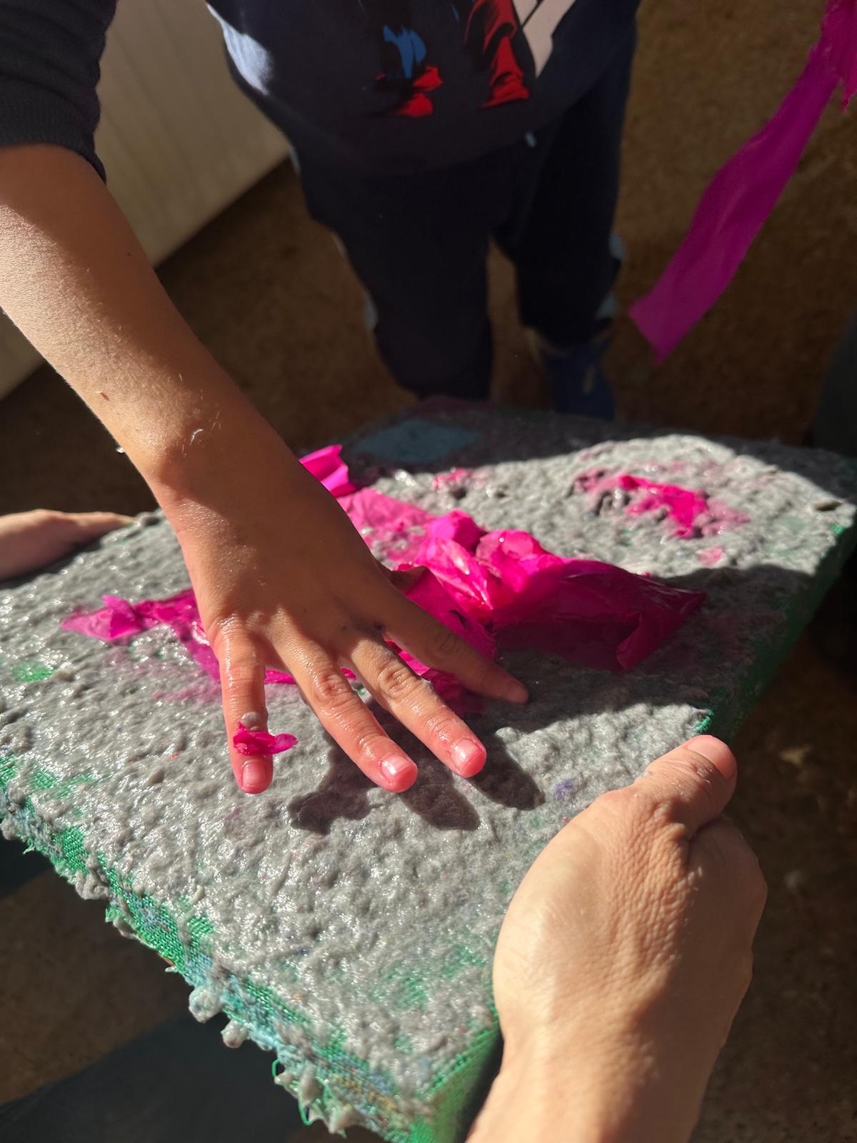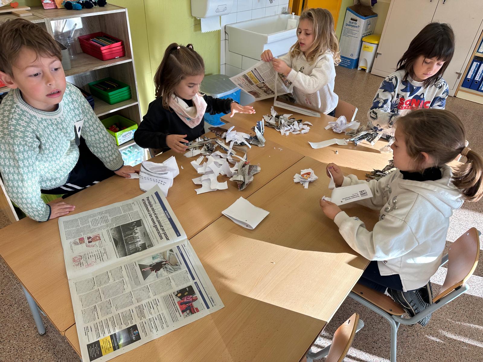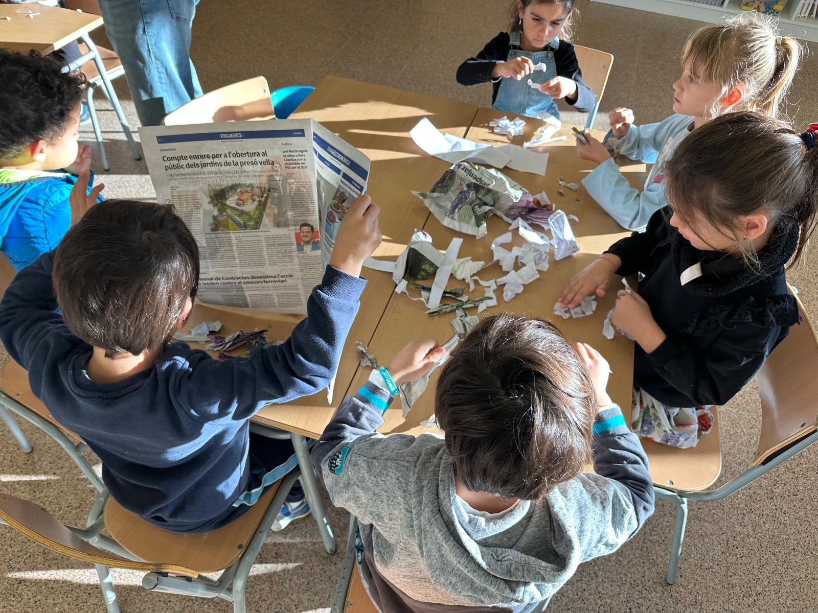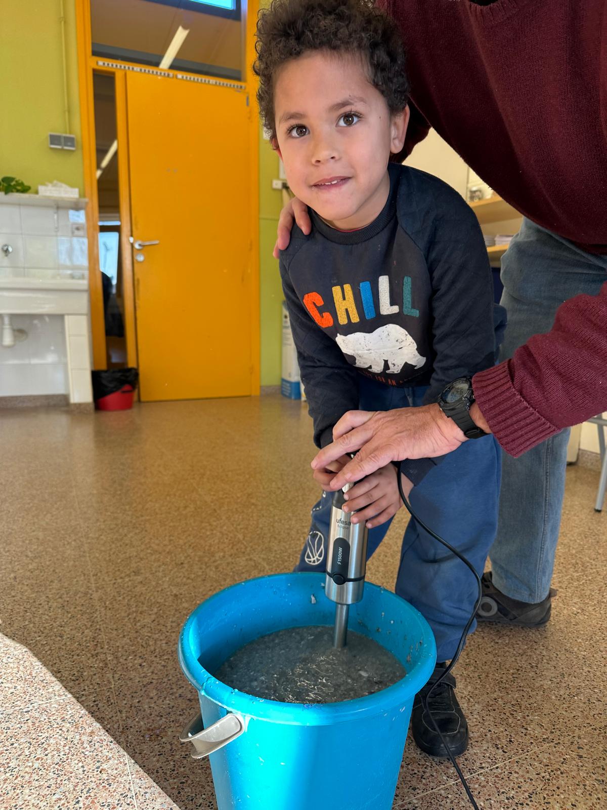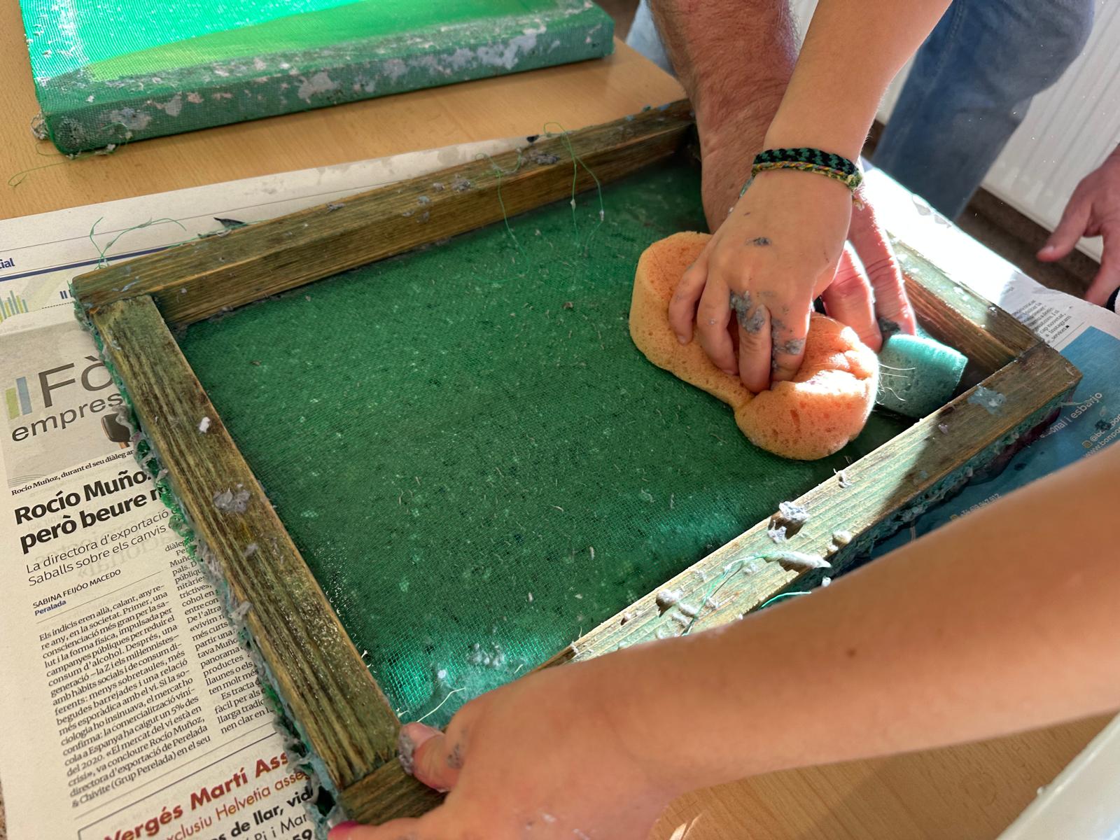 Els infants han pogut veure tot el procés i elaborar el seu propi full de paper a partir de materials reutilitzats. Un cop el tinguem ben eixugat servirà per fer postals i decoracions de Nadal per a l’escola, donant un sentit especial al treball realitzat per part de l’alumnat.