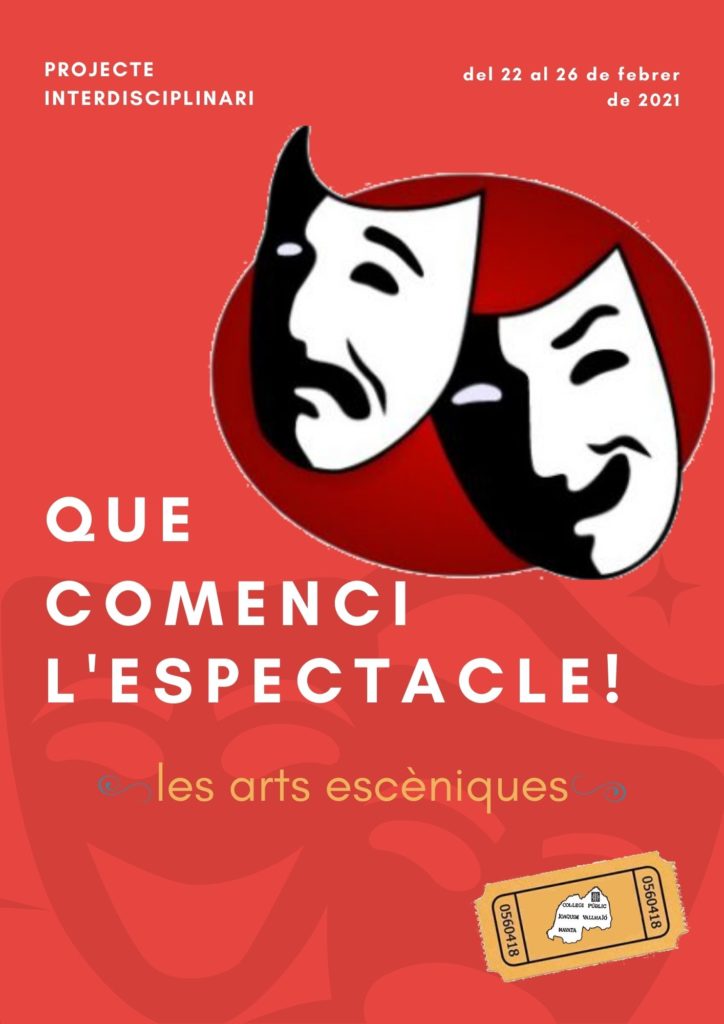 QUÈ COMENCI L’ESPECTACLE!! La setmana del 22 al 26 de febrer del 2021, els alumnes de l’escola Joaquim Vallmajó vam realitzar un projecte interdisciplinar sobre les arts escèniques. Tots els cursos (P3, P4 i P5) vam poder experimentar diferents arts escèniques: teatre, circ, dansa, titelles, ombres xineses, música…. Aquí us deixem un recull del que
