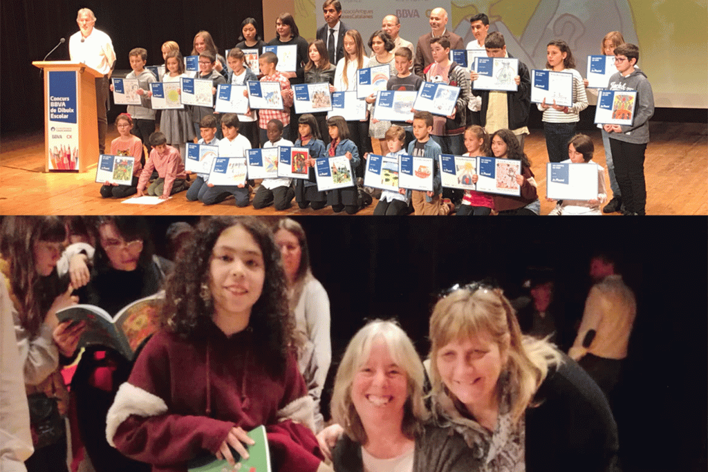 Avui, 4 de maig, s’ha fet l’acte d’entrega de premis del 38è Concurs de dibuix escolar del BBVA. La Victoria Sánchez, de 4t, ha guanyat el 1r Premi i el seu dibuix il·lustra el llibre de contes escrit per la Júlia Prunés (al mig, a la foto de baix) a qui hem demanat que ens