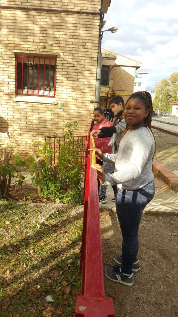 Els alumnes de 6è B hem sortit al pati per mesurar alguns dels elements que hi trobem. Fotos