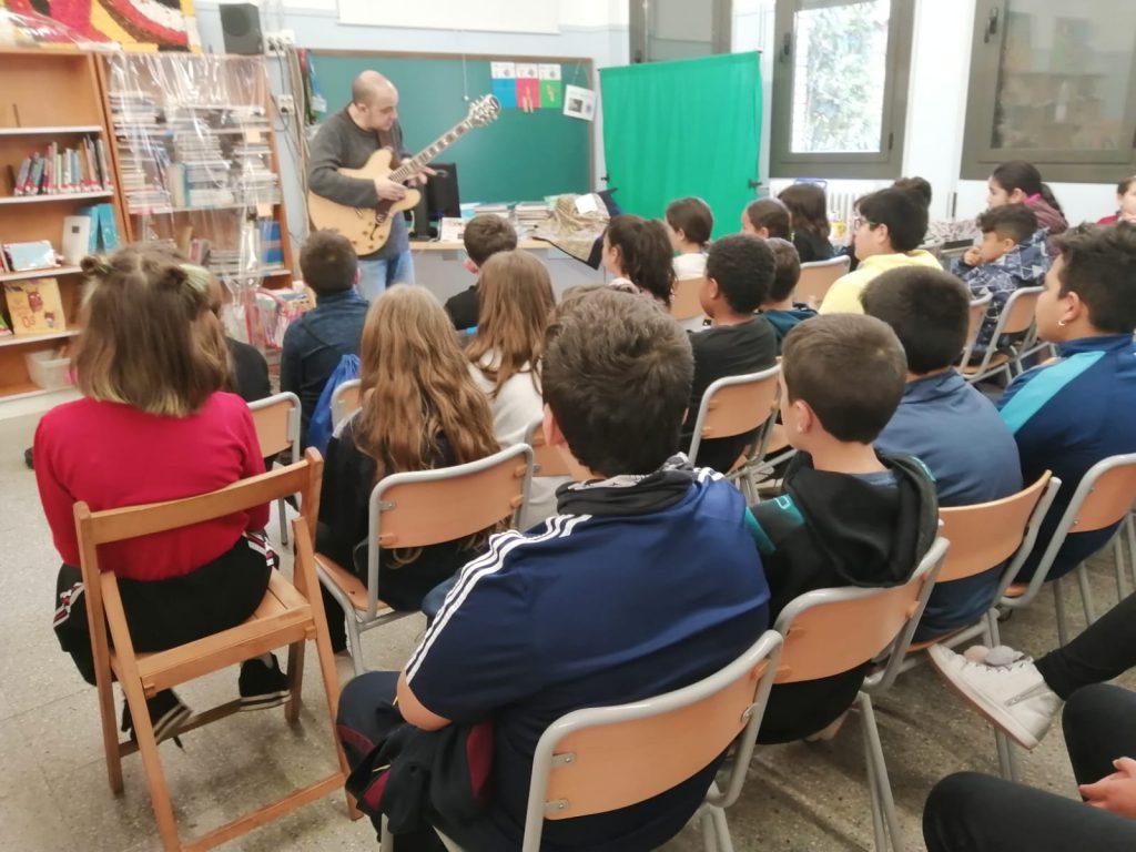 Els alumnes de 5è avui hem pogut gaudir d’una audició de GUITARRA. Ha estat un matí ple de MÚSICA on hem pogut aprendre i aprofundir aspectes relacionats amb la música Jazz. També hem pogut escoltar com amb un sol instrument i amb l’ajut de la tècnica semblava que toquessin 4 guitarres alhora. Ha estat tot un espectacle.