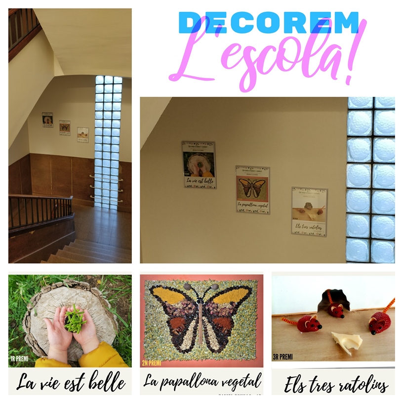 El curs passat vam estrenar l’escola pintada. I aquest curs hem començat a decorar-la amb les fotografies guanyadores del Concurs Fotogràfic “Un món d’olors i colors” i les portades de la nostra revista anual Tararí. Què us sembla?