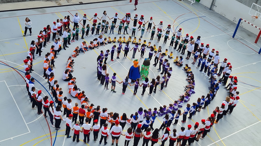 Vam dedicar una calorosa benvinguda a l’alumnat i mestres de l’escola Aigeira. Els vam voler compartir un tastet de la cultura catalana en un ambient alegre i divertit. La festa va començar amb tota la gresca d’un autèntic ball de festa major! Els nostres gegants, en Martí i la Vernada, juntament amb els capgrossos, van donar la benvinguda a l’alumnat grec al ritme de la música tradicional. Va ser un inici alegre i festiu que va omplir tot el pati de l’escola. Després, vam formar diverses rotllanes per ballar tots plegats la sardana “Noces d’Or a Badalona”. Per continuar la diversió, els vam convidar a afegir-se a ballar una versió més animada de la sardana tradicional, titulada “Coti per Coti” del grup The Tyets. Finalment, el nostre alumnat de 5è va posar el punt final a la rebuda amb un ball de bastons. Aquest ball tradicional català demostra la força, l’habilitat i la precisió dels balladors, i estem segurs que va impressionar molt els nostres convidats grecs. |