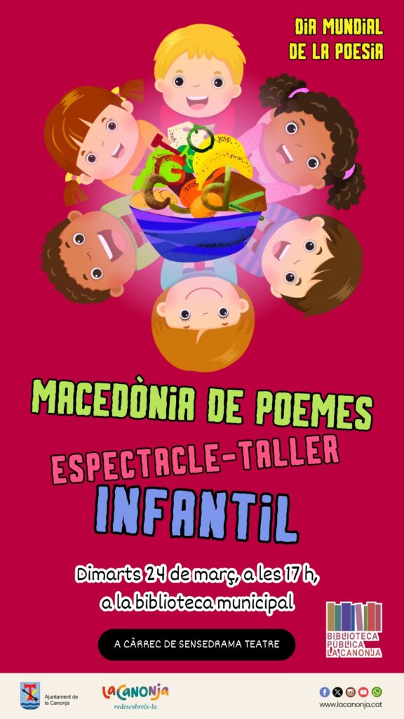 Des de la Biblioteca Municipal em demanen poder fer difusió de l’activitat que tenen planificada per demà dimarts dia 24 de març a les 17h. Nova sessió del Senalló de contes, aquest cop és especial amb un espectacle taller dedicat al Dia de la Poesia. Adjuntem el cartell.