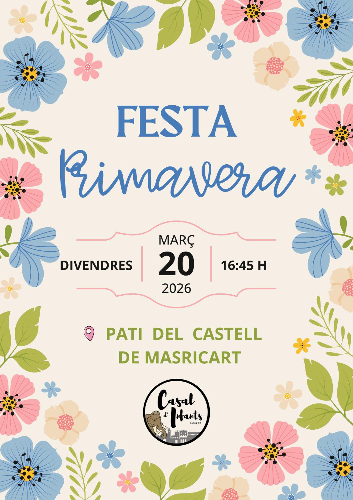 El *divendres 20 de març de 2026 a les 16:45 h* celebrarem la *Festa de Primavera* al *Pati del Castell de Masricart*