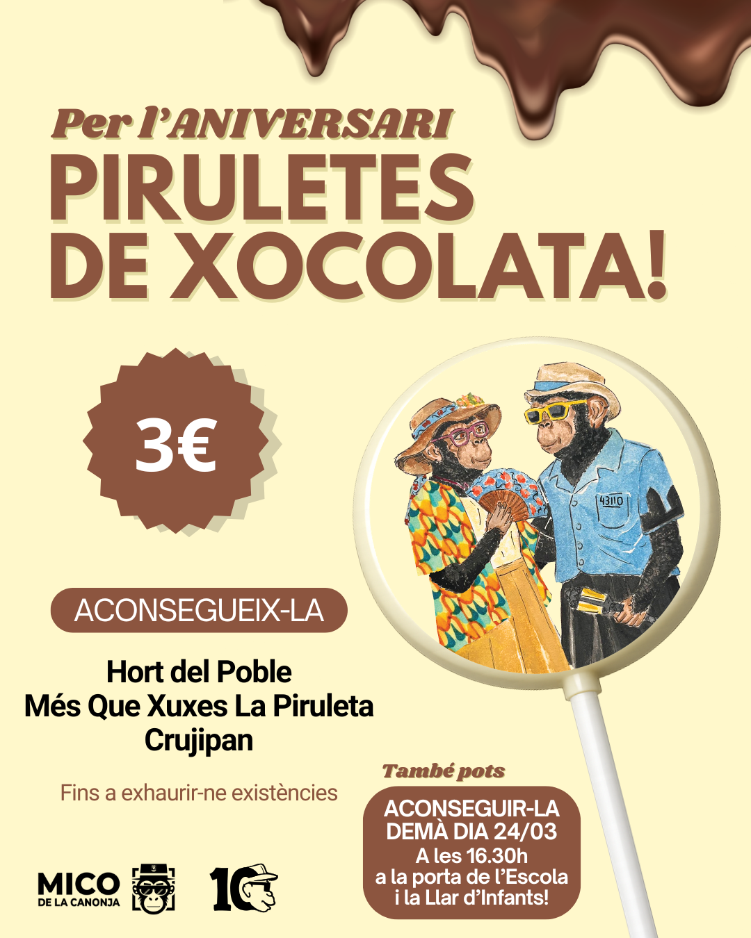 📢📢📢Difusió “Piruletes de Xocolata” – 10è aniversari – Associació Juvenil Mico de la Canonja📢📢📢