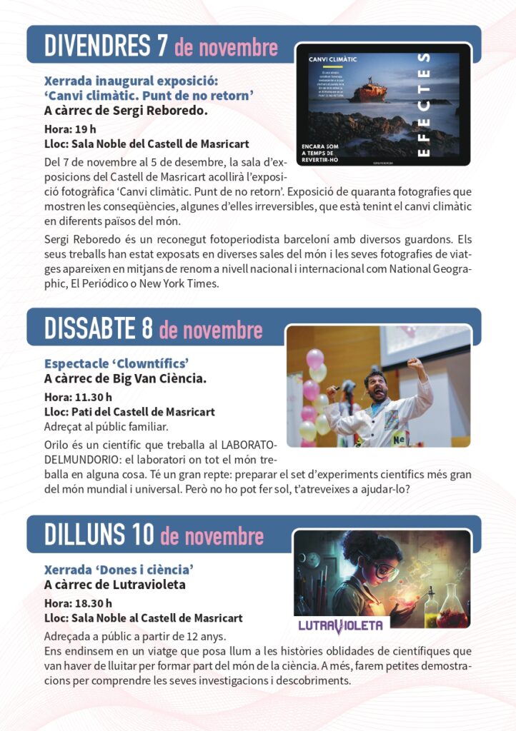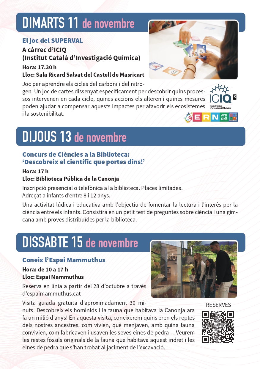 Des de la Regidoria de Cultura ens demanen poder fer difusió de les activitats que han preparat per a la Setmana de la Ciència 2025.