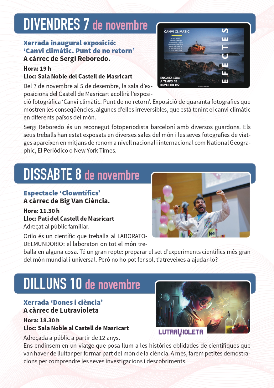 Us adjuntem les imatges amb la informació de les diferents activitats programades.