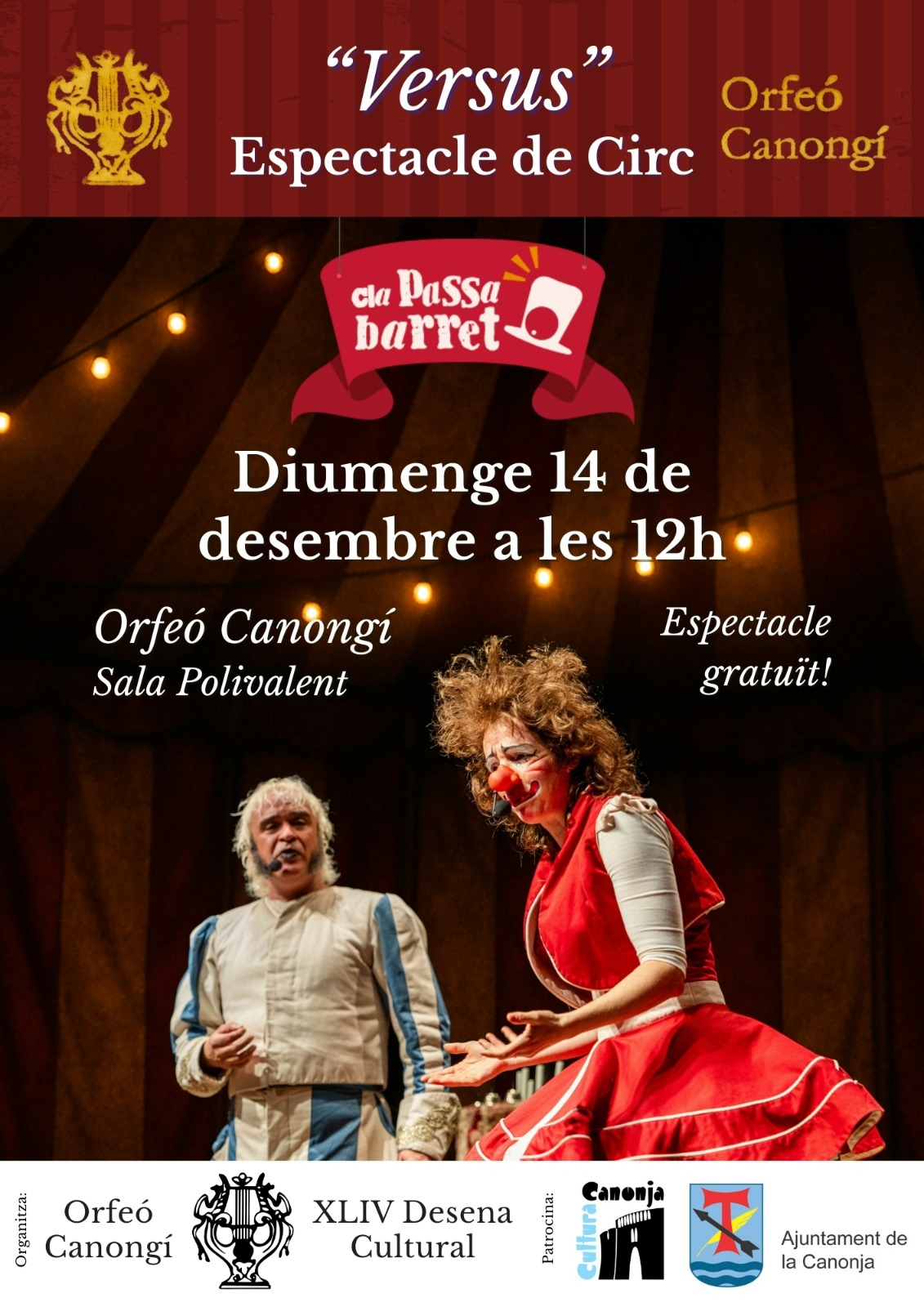 M’adreço a vosaltres amb l’interès de fer difusió de l’ESPECTACLE INFANTIL gratuït que es durà a terme aquest proper diumenge dia 14 de desembre a les 12h , a la SALA POLIVALENT de l’ORFEÓ CANONGÍ.