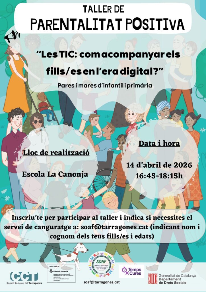 El Servei d’Orientació i Acompanyament a les Famílies (SOAF), de la Unitat d’Infància i Família de l’Àrea de Benestar Social del Consell Comarcal del Tarragonès, organitzen tallers de parentalitat positiva des d’una perspectiva global i universal, és a dir, adreçats a pares i mares amb infants de 0 a 17 anys que hi vulguin participar.