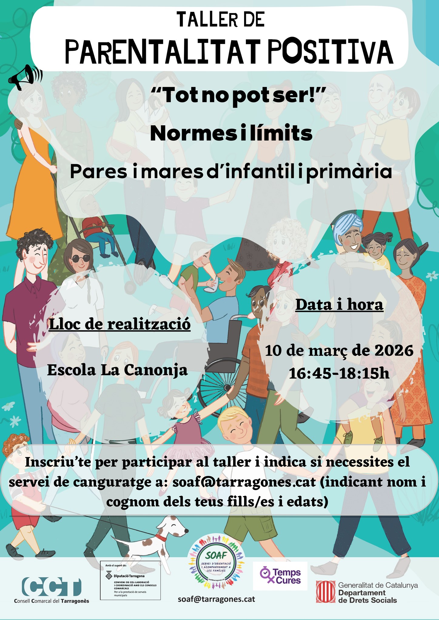 Inscripcions: mailto:soaf@tarragones.cat (indicar nom i cognoms, nom de l’Escola i el número de fills que necessitaran canguratge) .