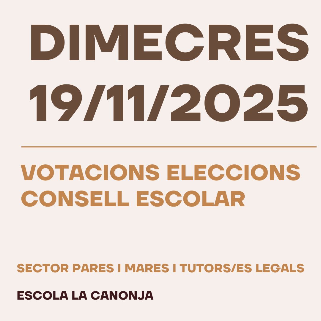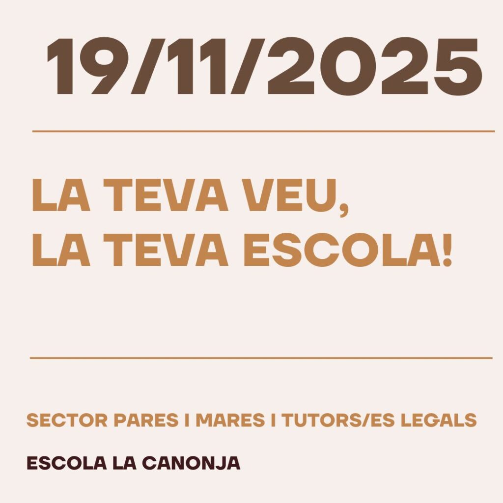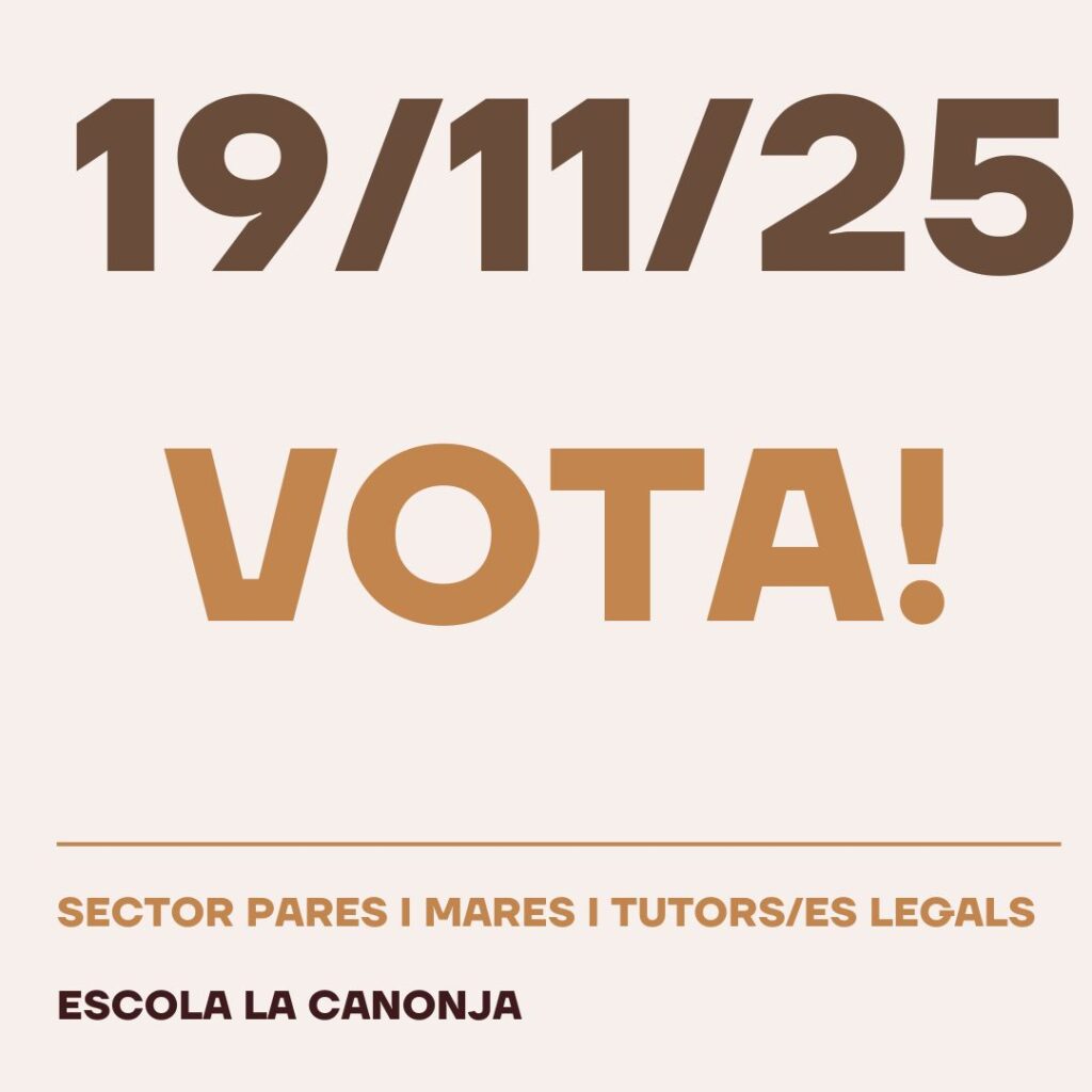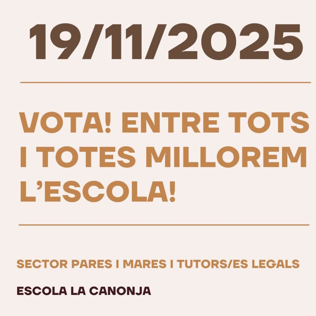 📣📣📣RECORDATORI JORNADA DE VOTACIÓ – ELECCIONS CONSELL ESCOLAR 2025 – SECTOR PARES, MARES I TUTORS LEGALS- ESCOLA LA CANONJA📣📣📣