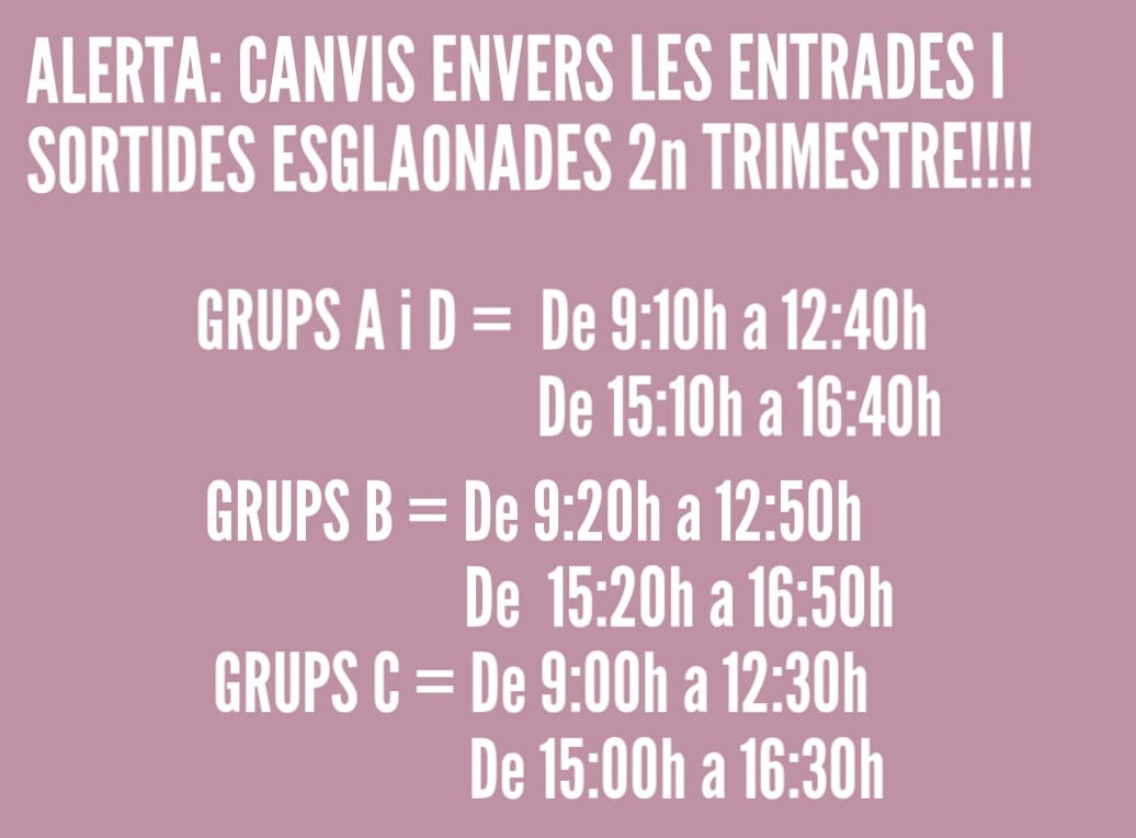 CANVIS RELACIONATS AMB LES ENTRADES I SORTIDES ESGLAONADES 2n TRIMESTREPer Elisenda Virgili / 17 de desembre de 2020 / Cicle Inicial Cicle Mitjà Cicle Superior General Infantil Portada