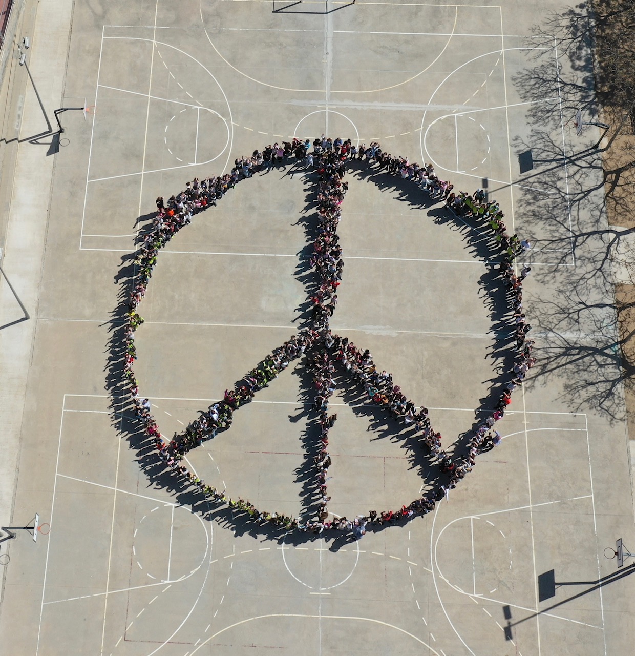 AQUESTA TARDA, I COM A  ACTIVITAT DE TANCAMENT D’AQUEST 2n TRIMESTRE DEL CURS 21-22, HEM CONVOCAT A LA PISTA DEL PATI DE L’ESCOLA A TOT L’ALUMNAT , EL PROFESSORAT I EL PERSONAL PAS DEL CENTRE PER TAL D’EXPRESSAR EL NOSTRE MANIFEST PER LA PAU A UCRAÏNA I AL MÓN.