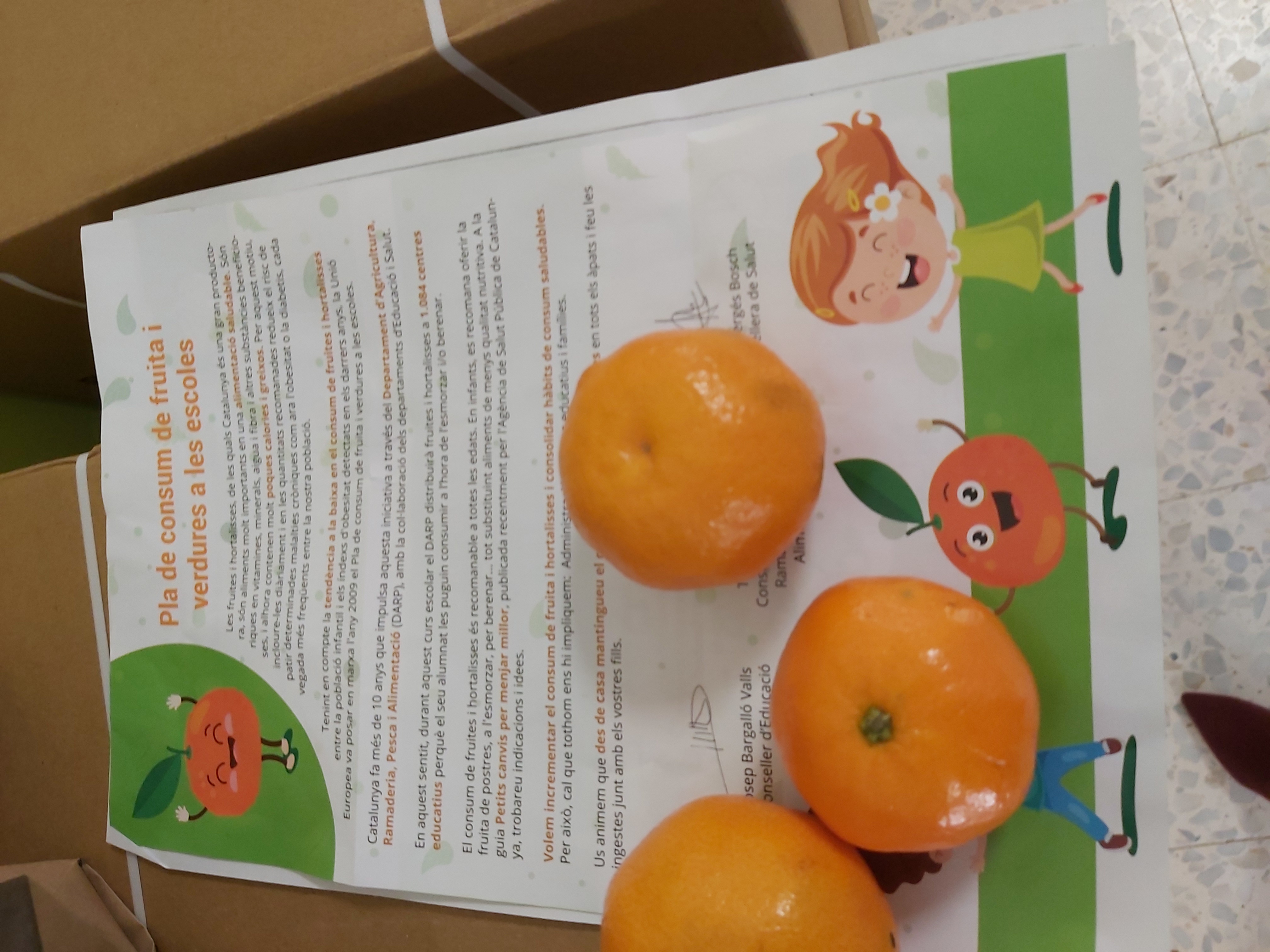 Tot i haver començat el programa el proppassat dia 16 de novembre, avui ens han arribat al centre les bossetes adreçades a les famílies de la nostra escola. Us arribaran avui per la tarda. Les vostres filles i els vostres fills portaran a casa una bosseta de cortesia i presentació del programa ( 3 mandarines i un fulletó informatiu).