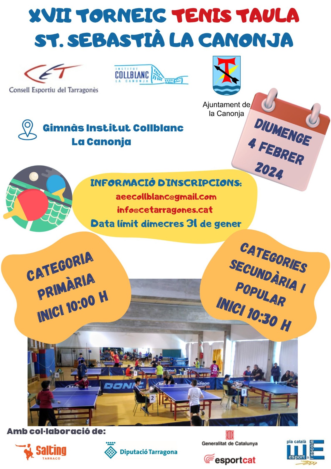 Anima’t i participa al XVII TORNEIG TENNIS TAULA SANT SEBASTIÀ LA CANONJA! Fem d’aquest torneig un èxit amb la participació entusiasta de tots!