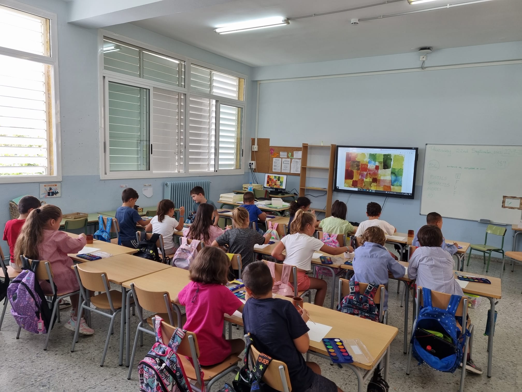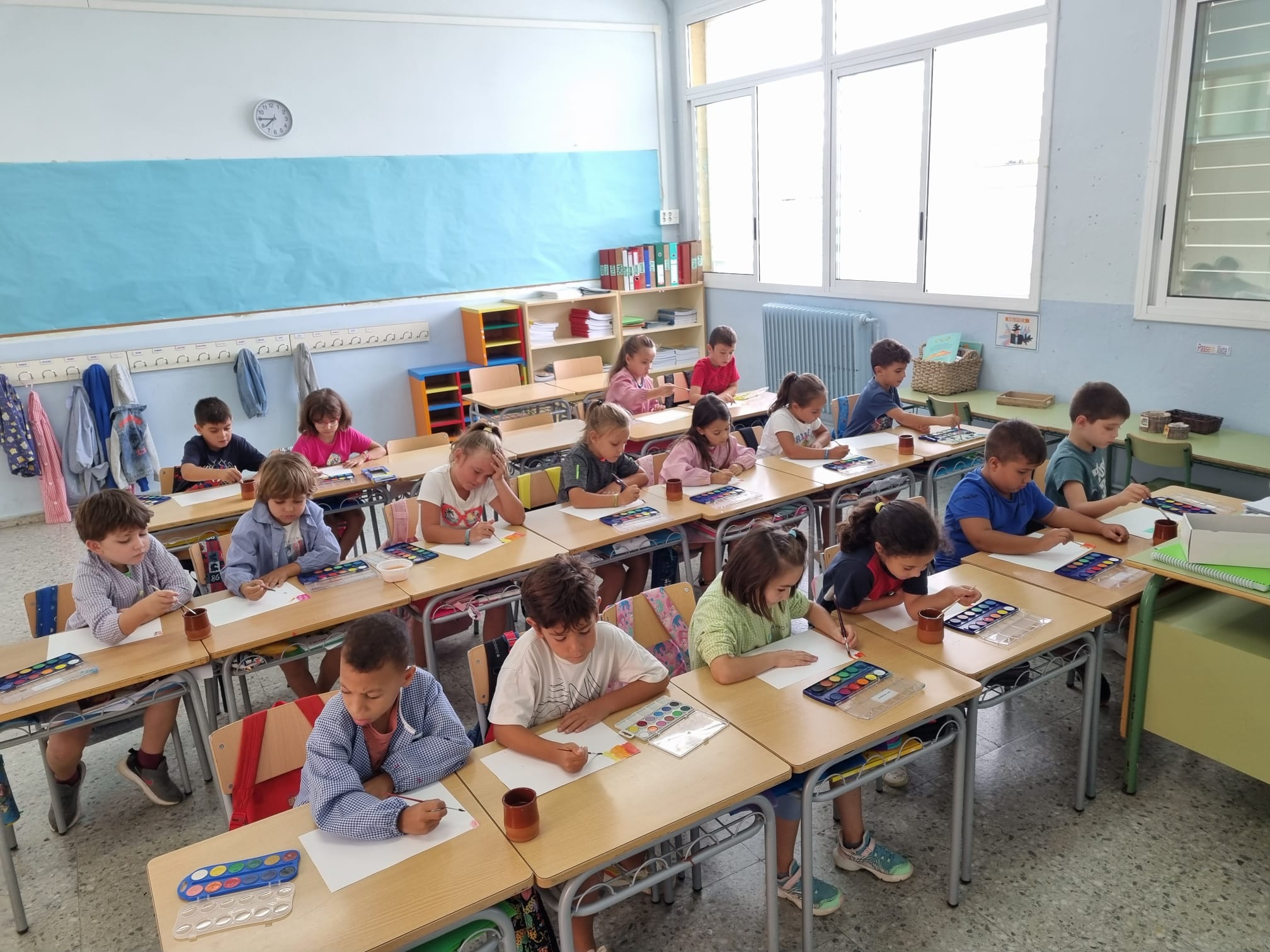 Aquesta setmana l’alumnat de 1r i 2n han estat entusiasmats d’estrenar les seves aquarel·les. Aquest material és nou pels infants de primer els quals han estat treballant el fons i la figura humana. En canvi, a segon, que ja n’estan més familiaritzats, han fet un treball a partir de l’obra de Paul Klee.