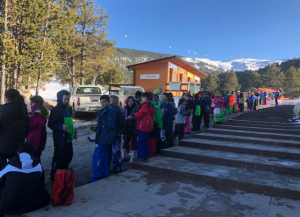 Avui ha estat el primer dia d’esquí. Hi havia molta neu, feia solet i hem patit una mica de calor. Tots teníem moltes ganes de començar, alguns se’n recordaven de l’any passat i altres volien lliscar per primer cop.