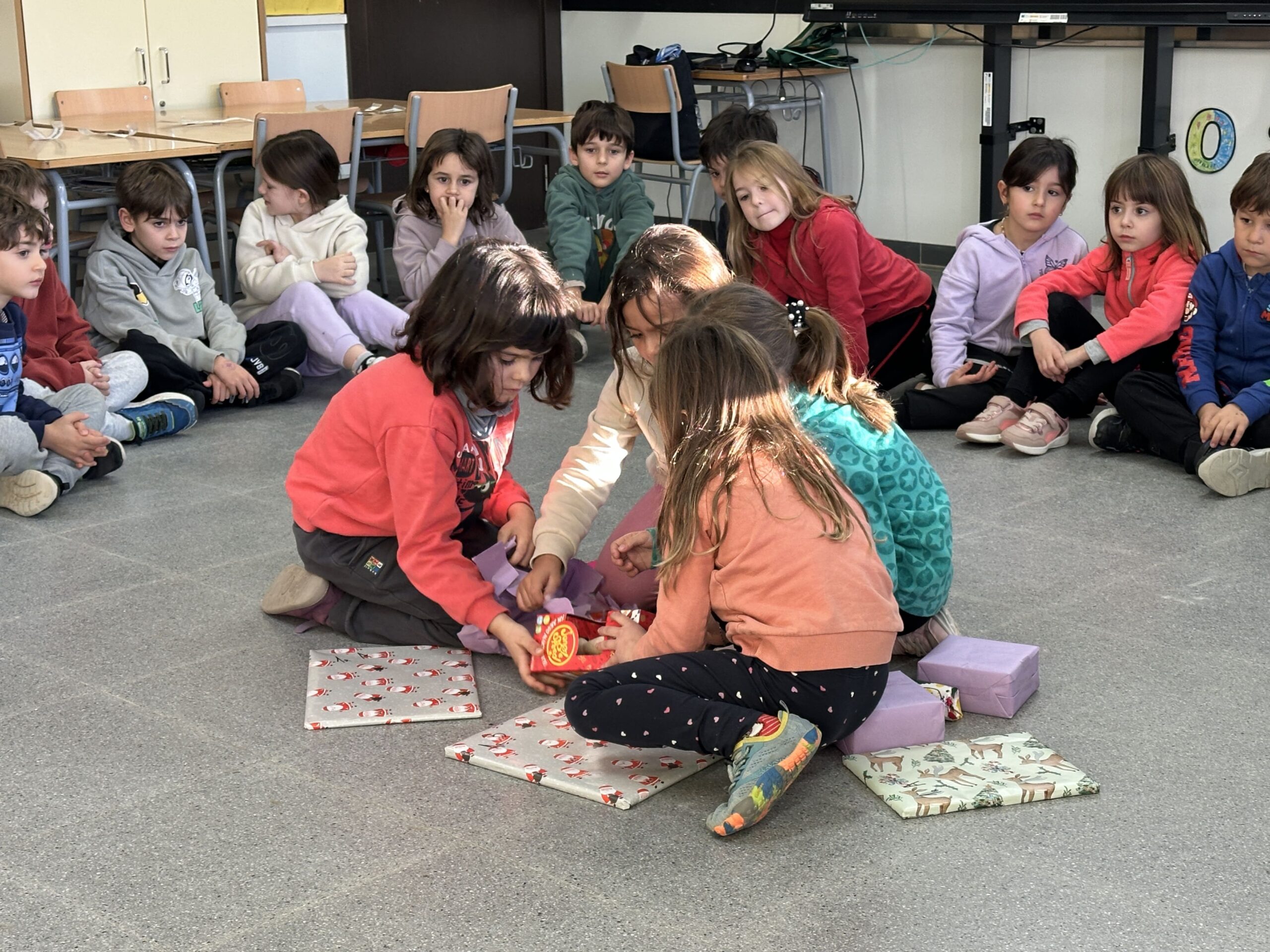 Els nens i nenes de primer vam tornar de les vacances de Nadal amb una sorpresa molt especial: els Reis d’Orient ens havien deixat alguns regals a les aules!
