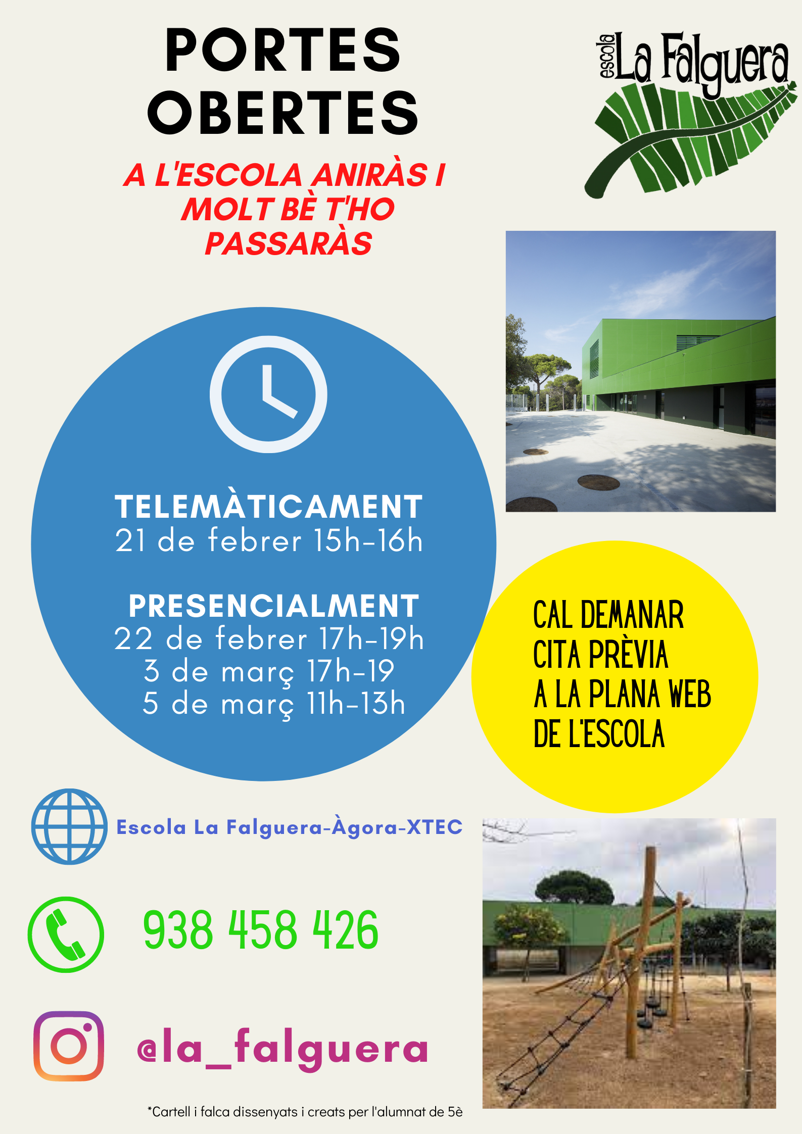 “A La Falguera vindràs i molt bé t’ho passaràs” admin16/02/22 Vols venir a conèixer el nostre projecte educatiu? T’esperem a les nostres portes obertes! https://agora.xtec.cat/ceiplafalguera/wp-content/uploads/usu1049/2022/02/Anunci-1.MP4.mp3