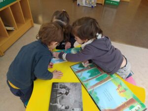Aquesta setmana els infants de la classe dels cocodrils hem realitzat la primera sortida del curs a la Biblioteca Jaume Fuster. Allí hem deixat volar la nostra imaginació amb l’activitat “Peix, peixet” que ens havien preparat i també hem tingut una estona per gaudir dels contes lliurement.