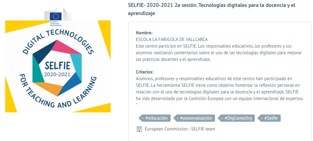La Farigola de Vallcarca ha realitzat una diagnosi del centre a través de SELFIE, una iniciativa de la Comisió Europea  que es financia a través del programa Erasmus