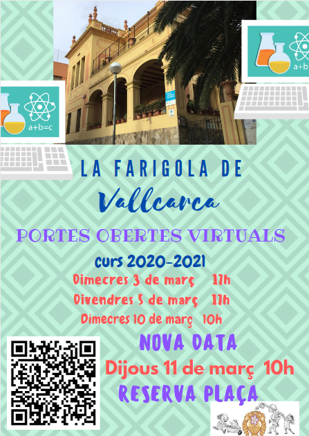 Hem afegit un altre dia de portes obertes virtuals. Podeu reservar plaça através del DOODLE clicant a RESERVA PLAÇA.