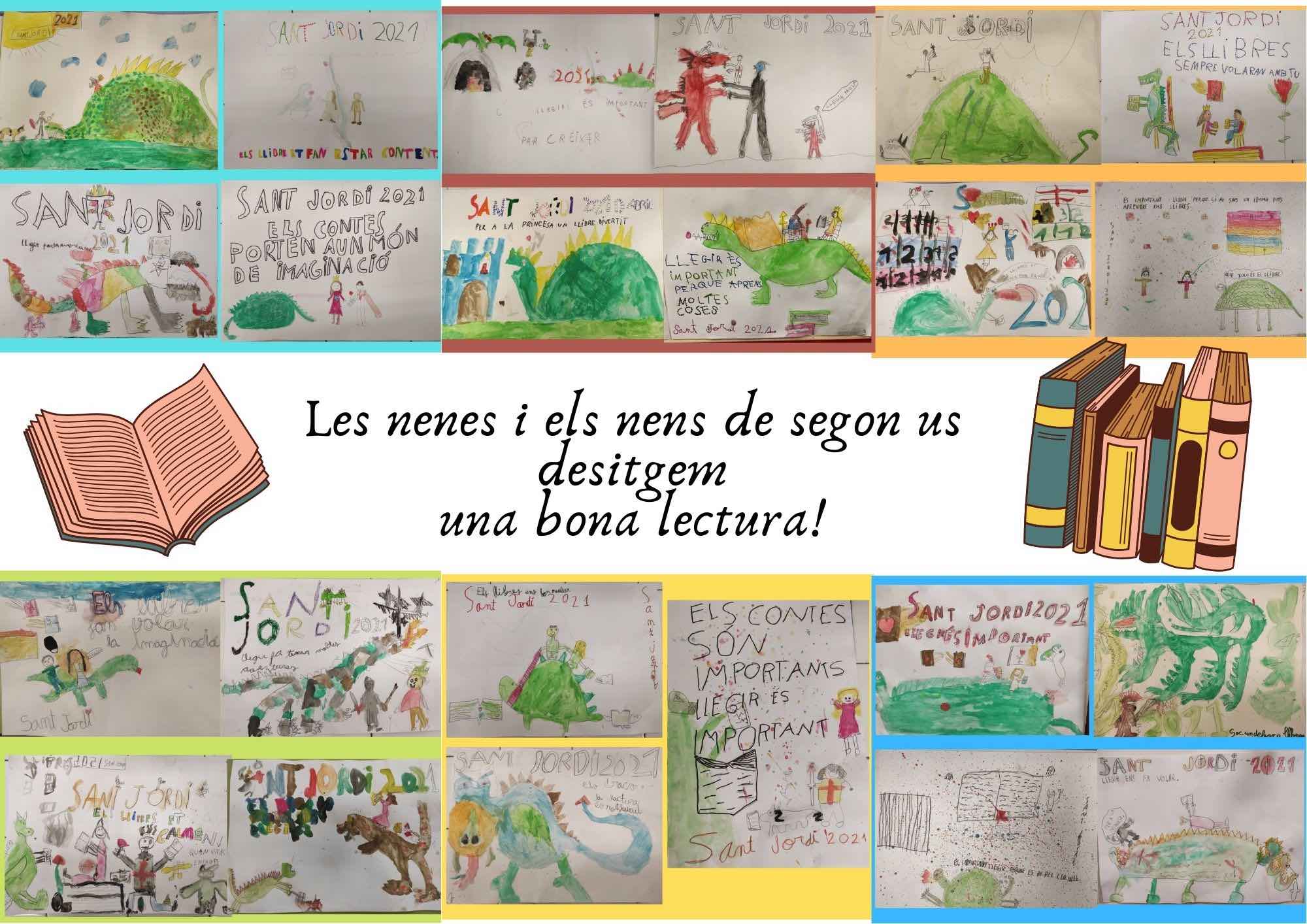 La princesa, el drac i el cavaller s’han enamorat dels llibres en aquests cartells que han creat els nens i nenes de segon. Llegiu les frases que han escrit i que la lectura us acompanyi sempre!