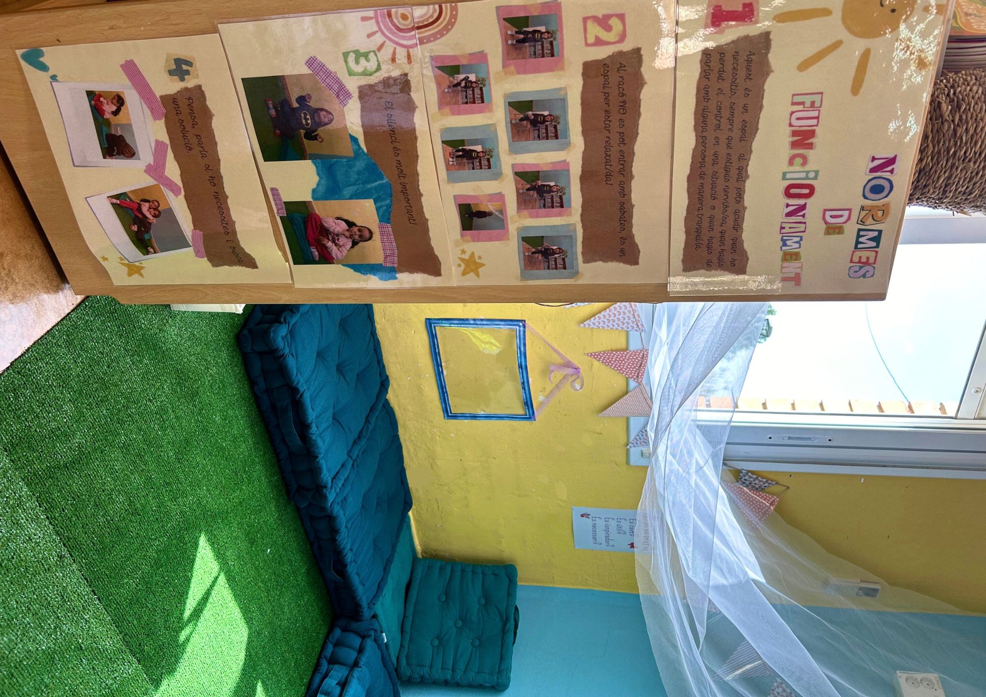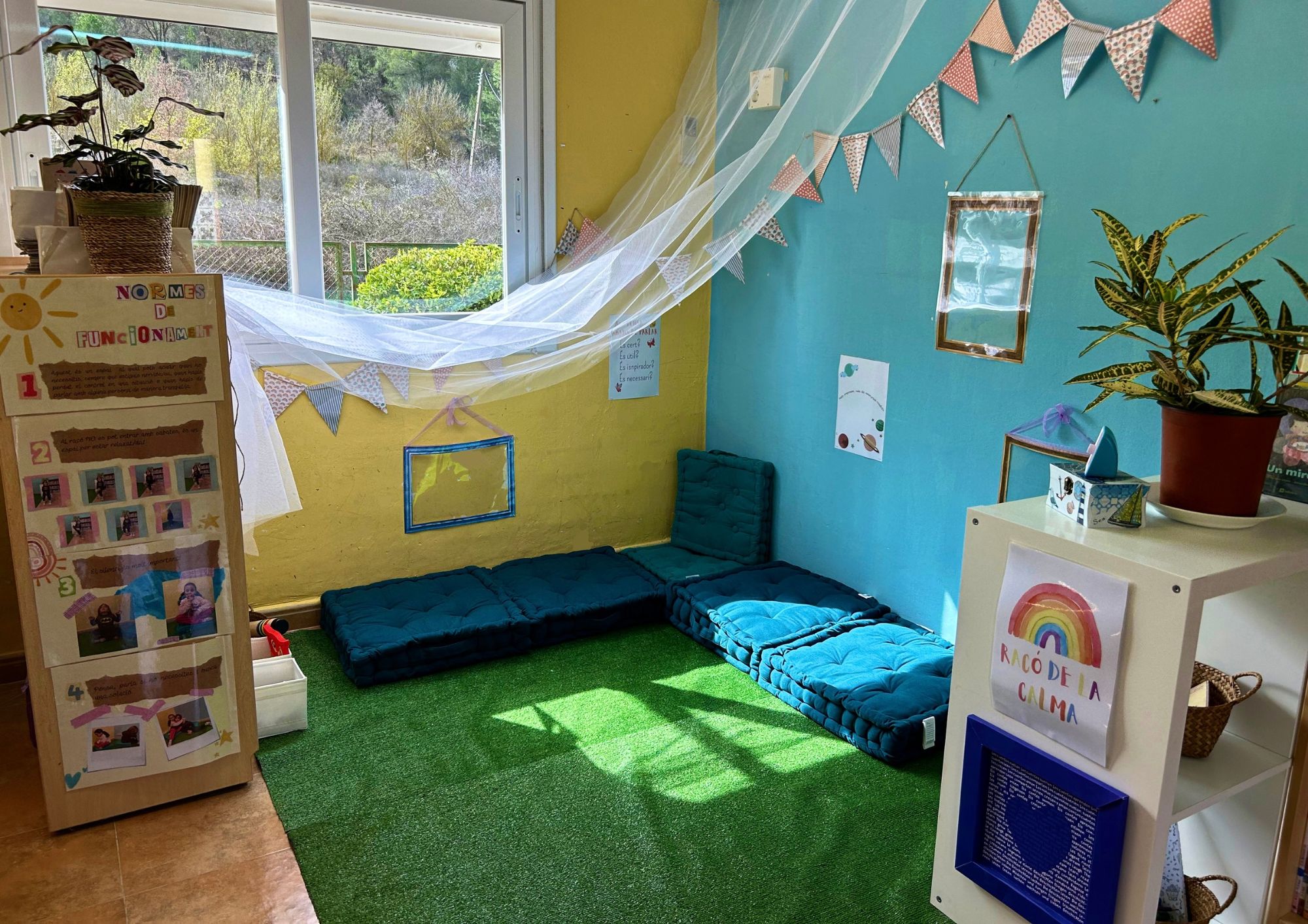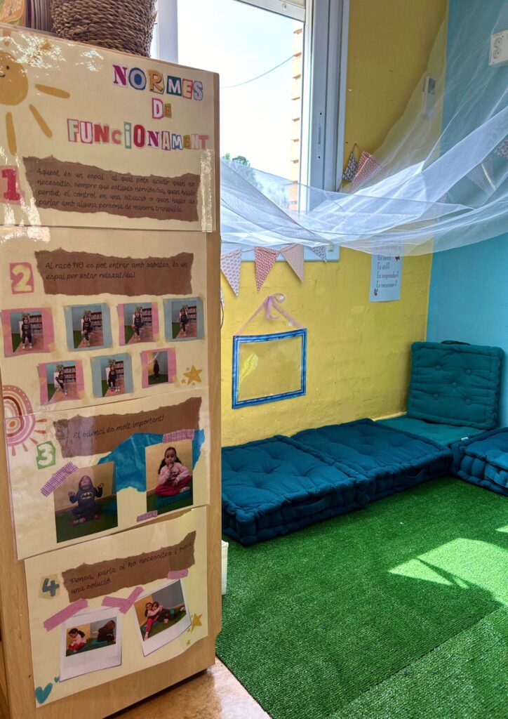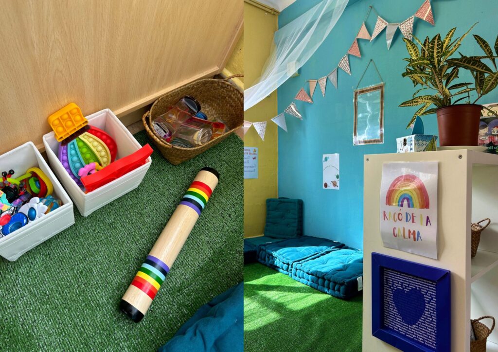 Espais Per a nosaltres, els espais de l’escola son de vital importància i estem treballant en la construcció i millora de nous espais i dels que ja tenim. El curs 2023-2024 hem creat un nou espai a la nostra escola: el racó de la calma.