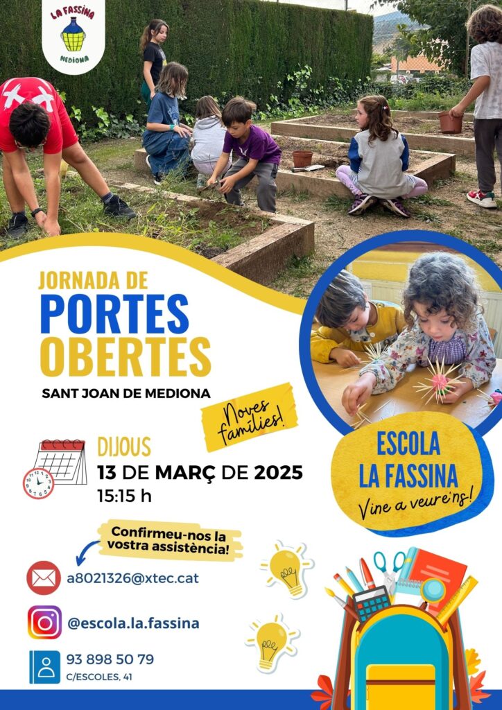 Dijous 13 de març de 2025, a la tarda, la nostra escola obrirà les portes a noves famílies que estiguin interessades en veure de primera mà com treballem.